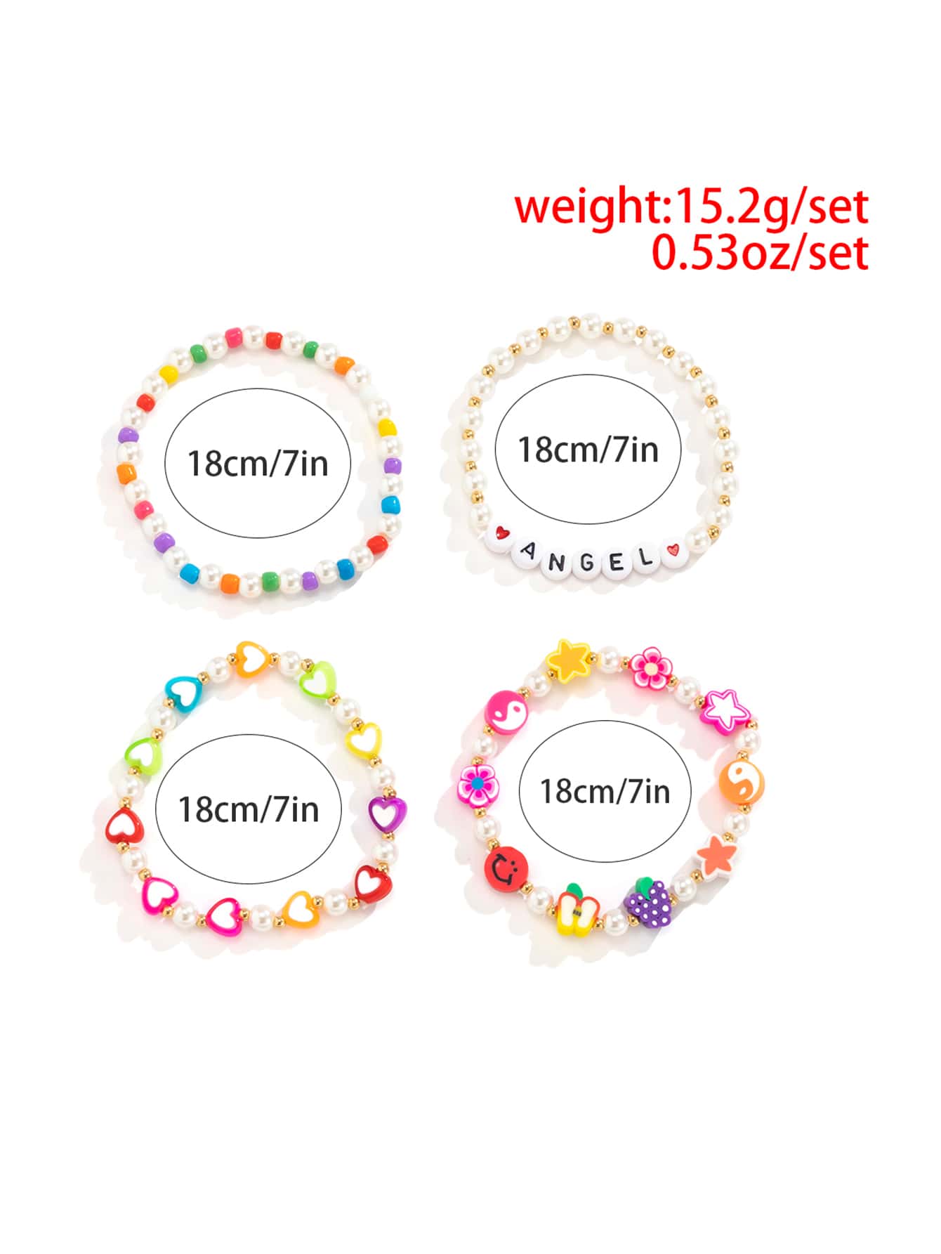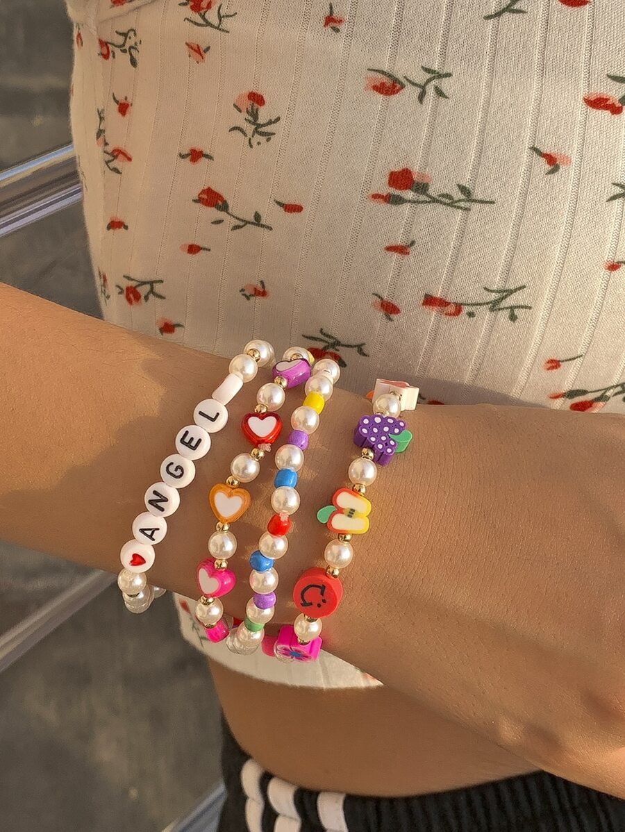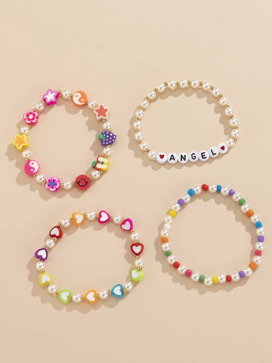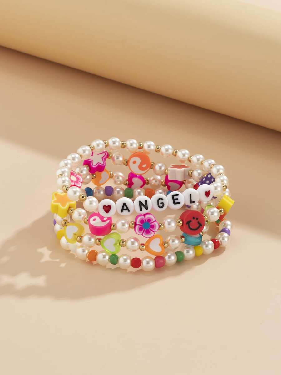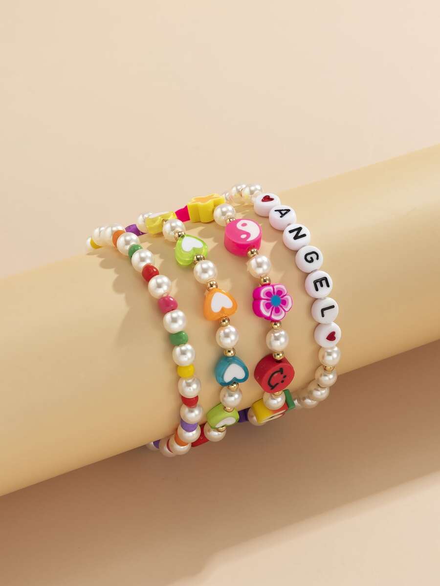 4 Stücke Perlenarmband mit Buchstaben Grafik