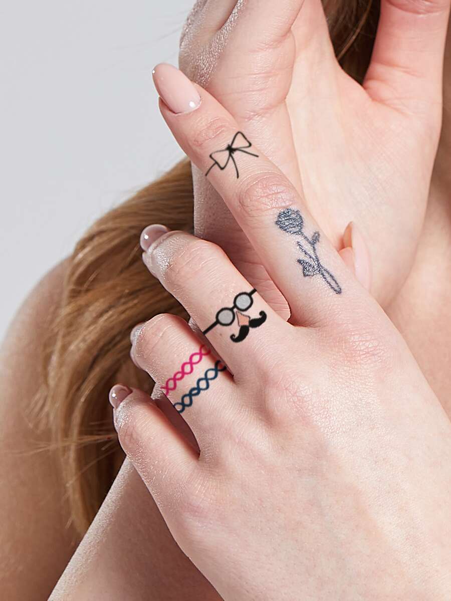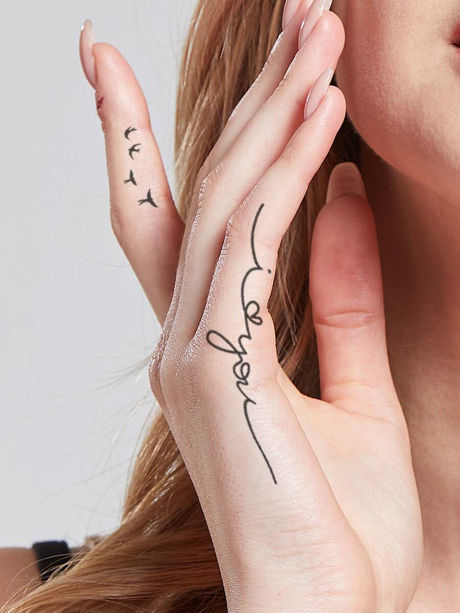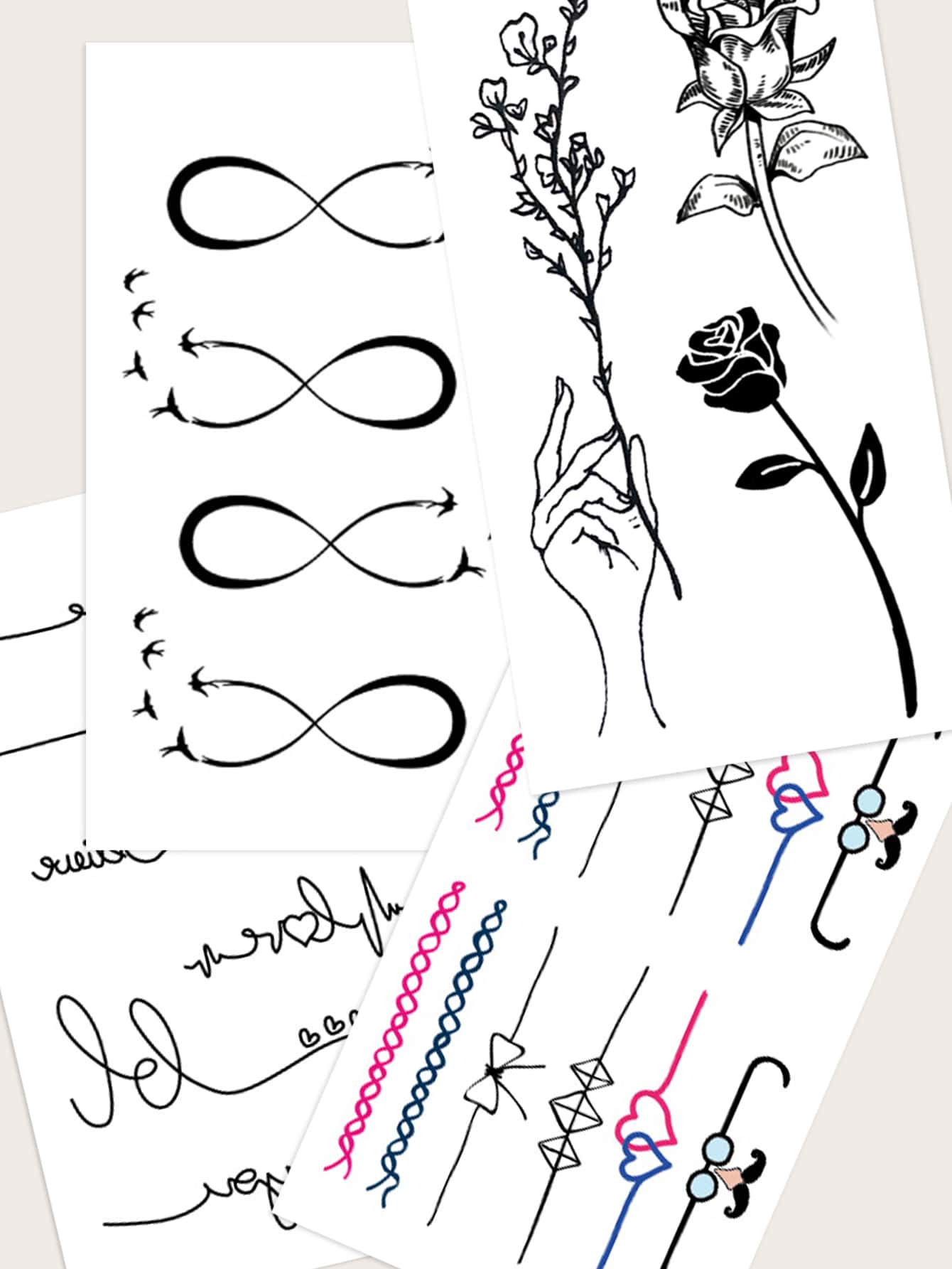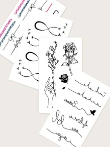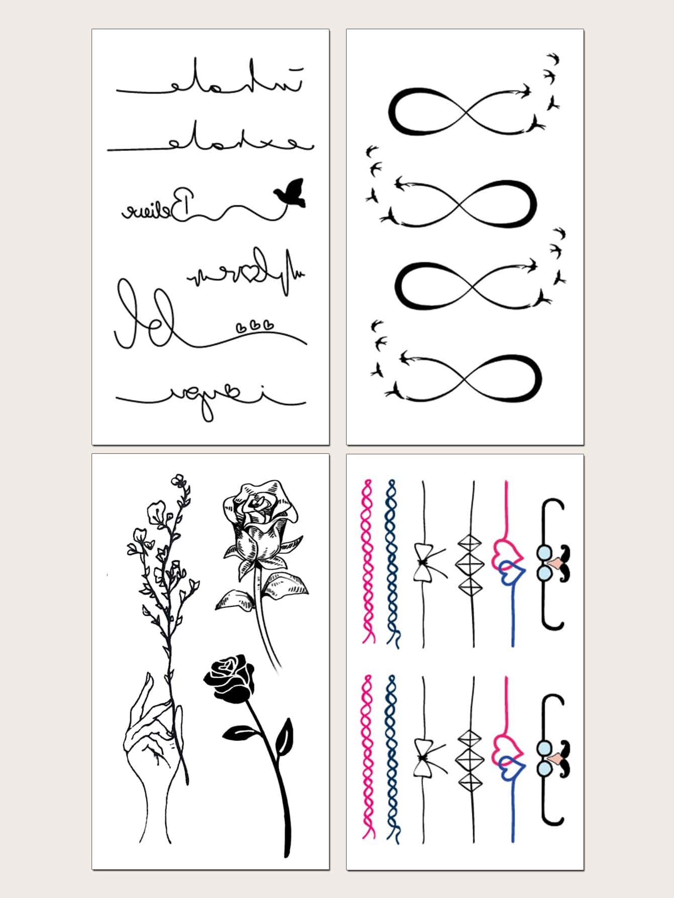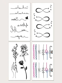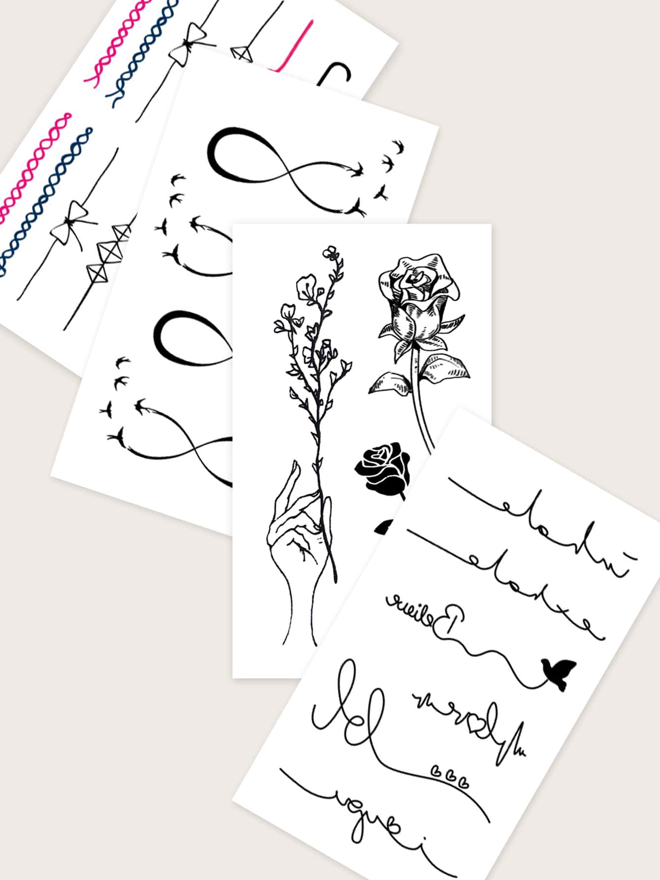 4 Blätter Tattoo Aufkleber mit Blume & Buchstabe Grafik