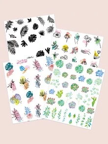 4 Blätter Nagel Wasser Aufkleber mit Pflanze Muster