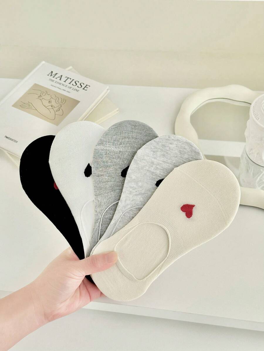 5 Paar Damen unsichtbare Socken, einfarbiges Herz Muster, modische vielseitige Lässig Kurzsocken für Frühling/Sommer