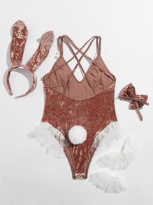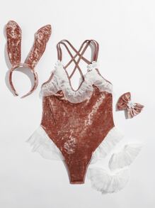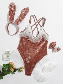 6 Stücke Samt Hase Kostüm Set mit Spitzenbesatz