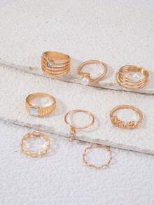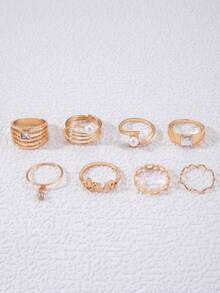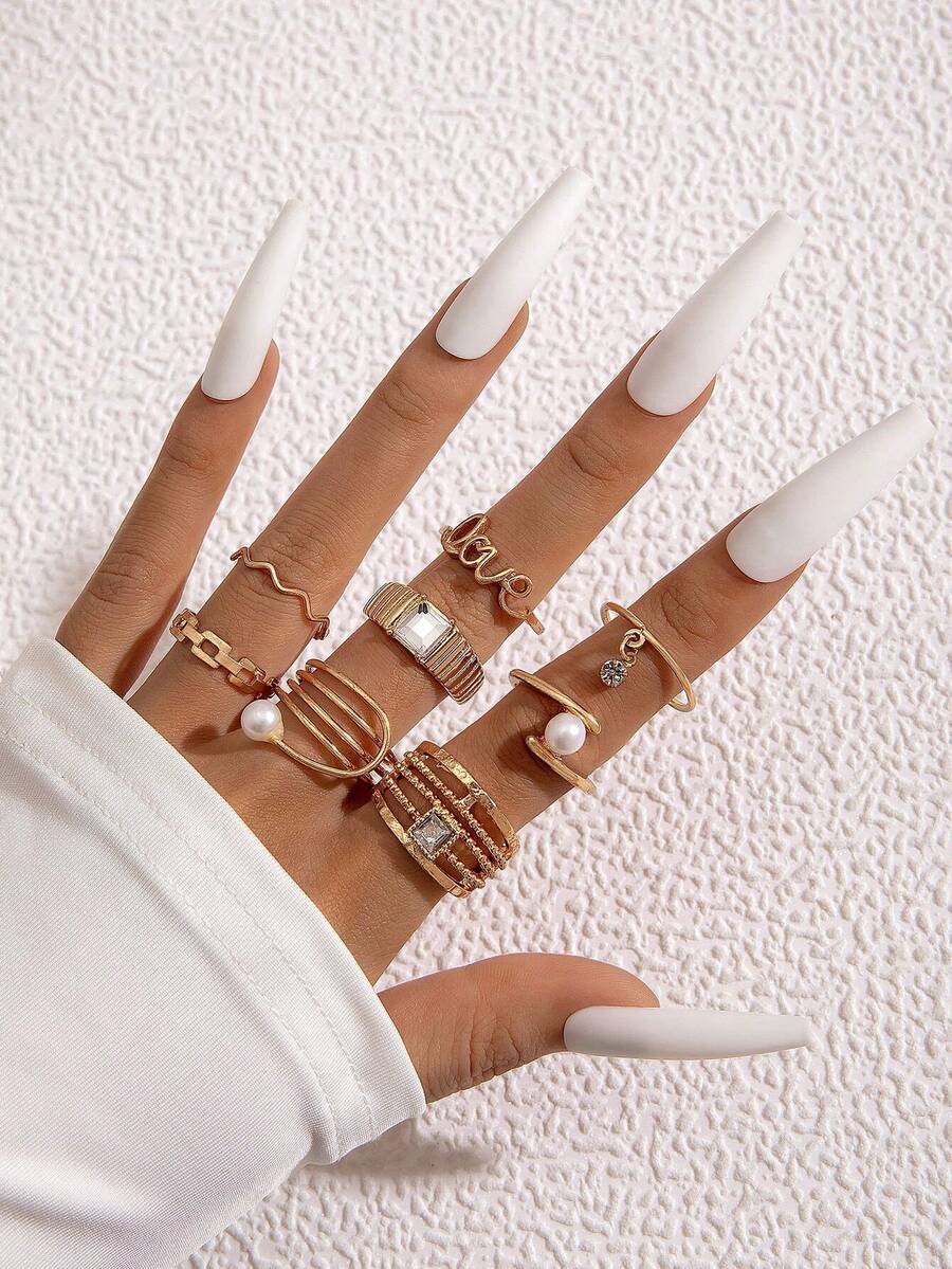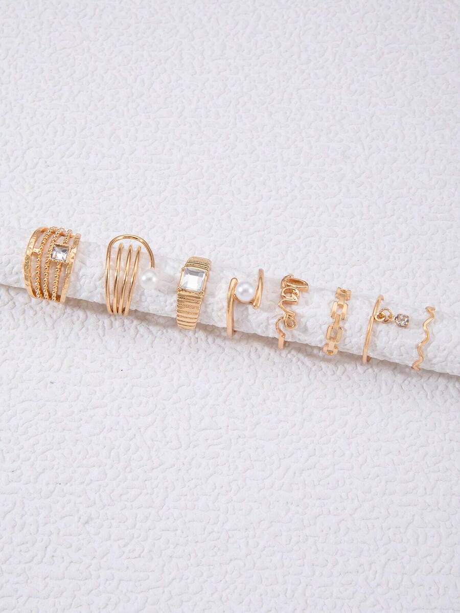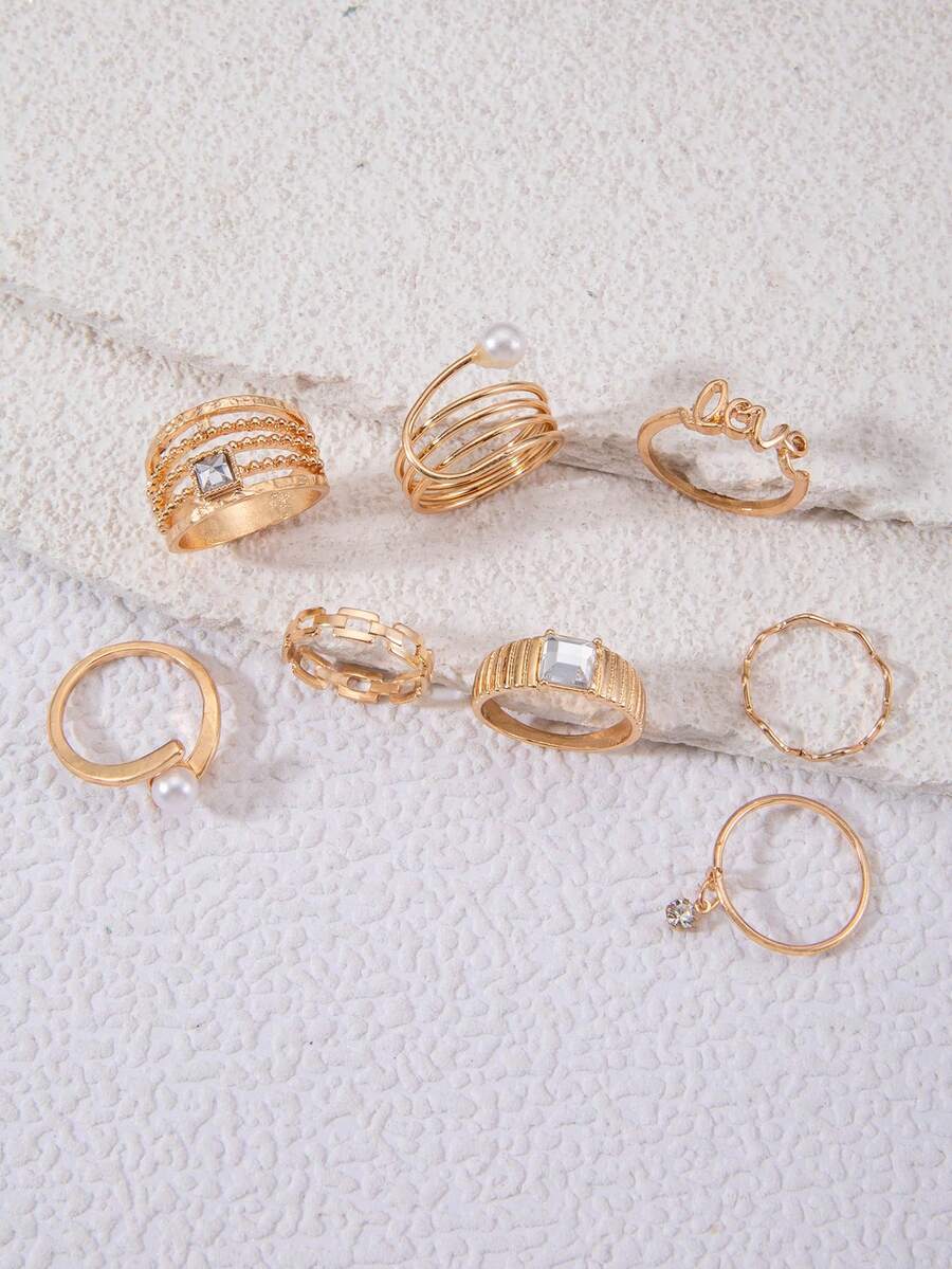 8 Stücke einfaches Buchstaben "Love" Perlen- und Strass-Spiralringset, tolles Geschenk für Frauen
