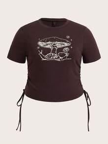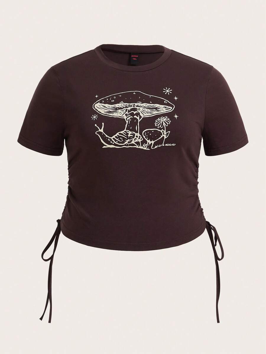 Aan Widyanto Große Größe T-Shirt mit Pilzmuster, seitlichem Schnürzug,