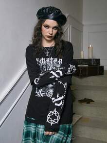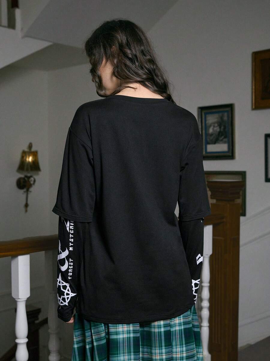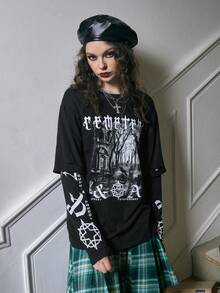 Academia T-Shirt mit Riss, 2 in 1 Buchstaben Grafik