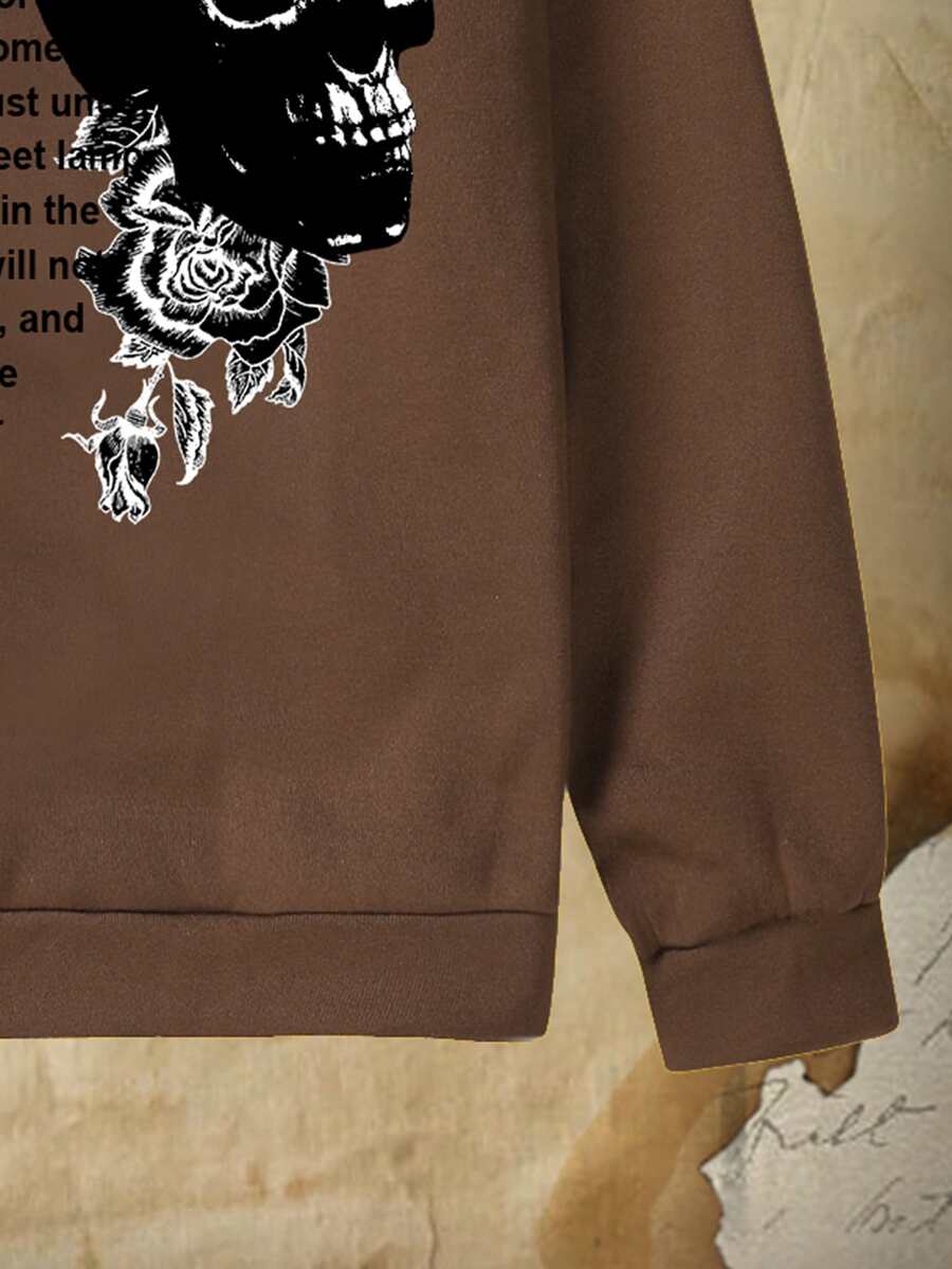 Academia Männer Hoodie mit Schädel & Rose Muster, Tunnelzug, Thermal Futter