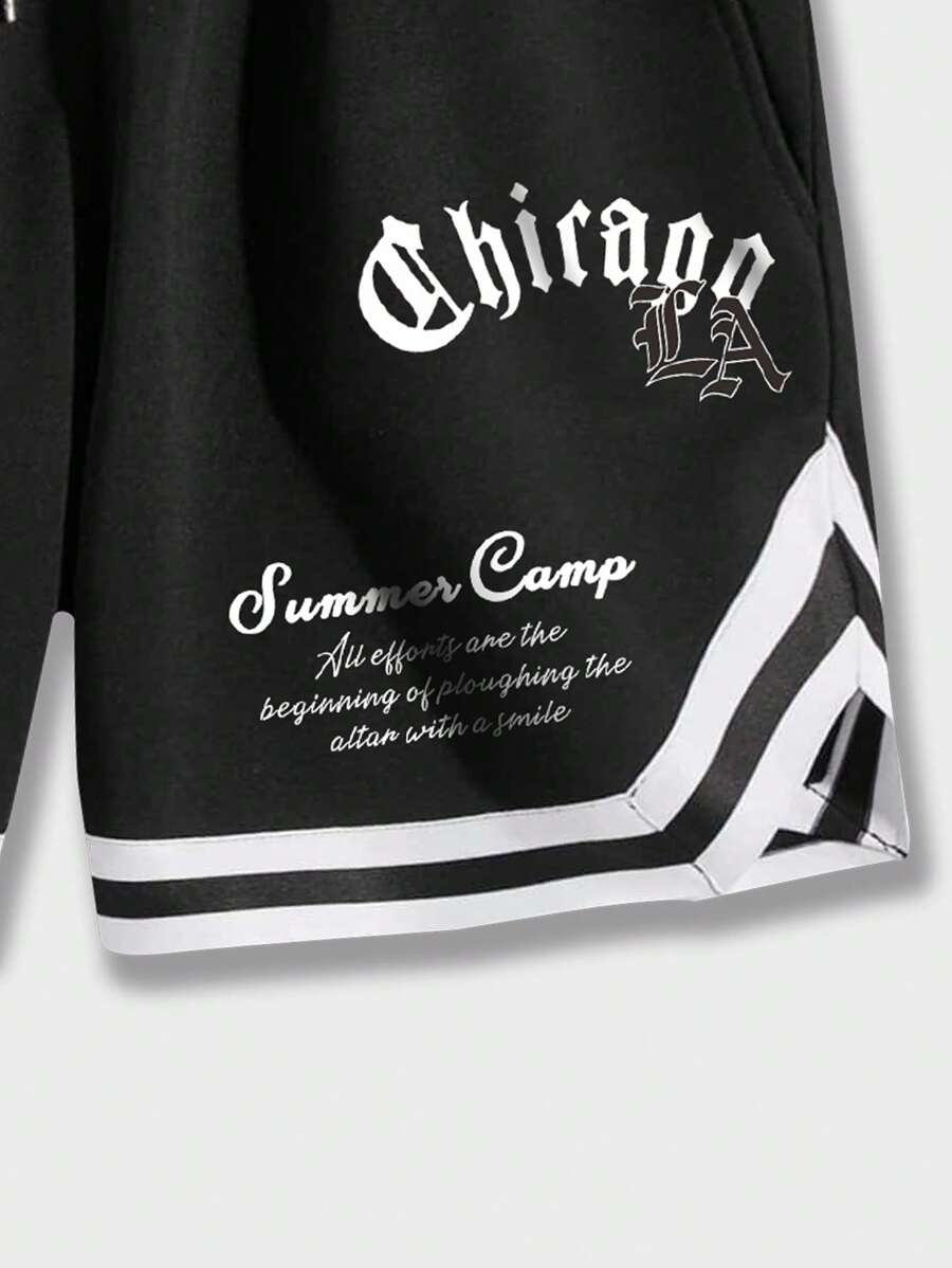 Academia Herren Basketball-Shorts mit Buchstaben-Grafik, Streifenbesatz und Kordelzug-Taille, Schule