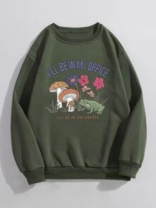 Academia Sweatshirt mit Buchstaben Pilz & Frosch Grafik, Thermal Futter
