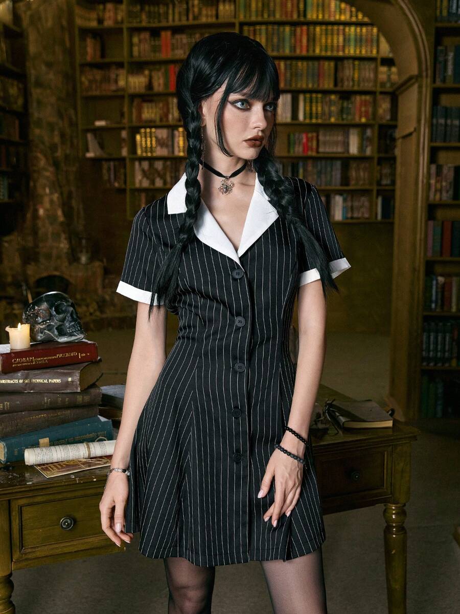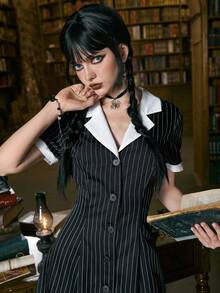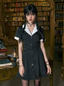 Academia Hemdkleid mit Streifen Muster, Knopf vorne