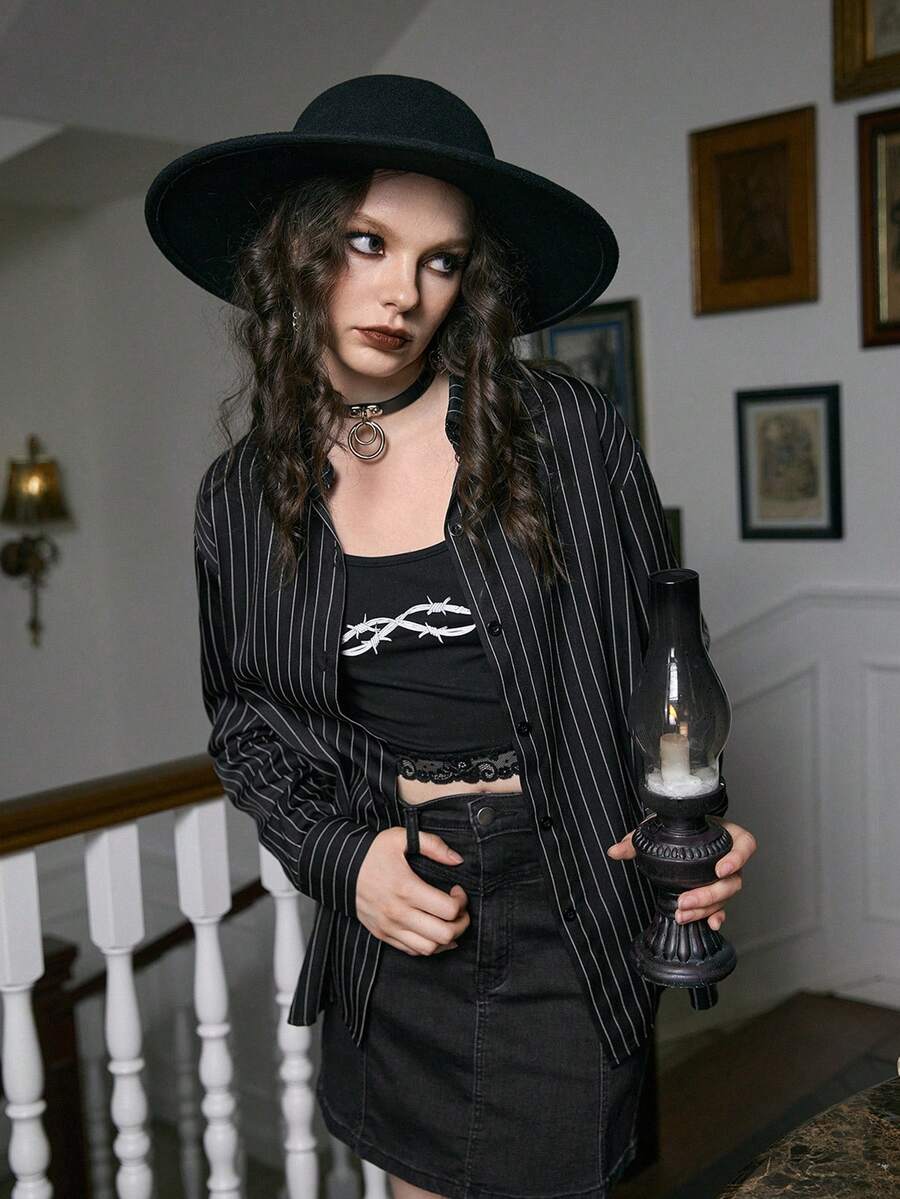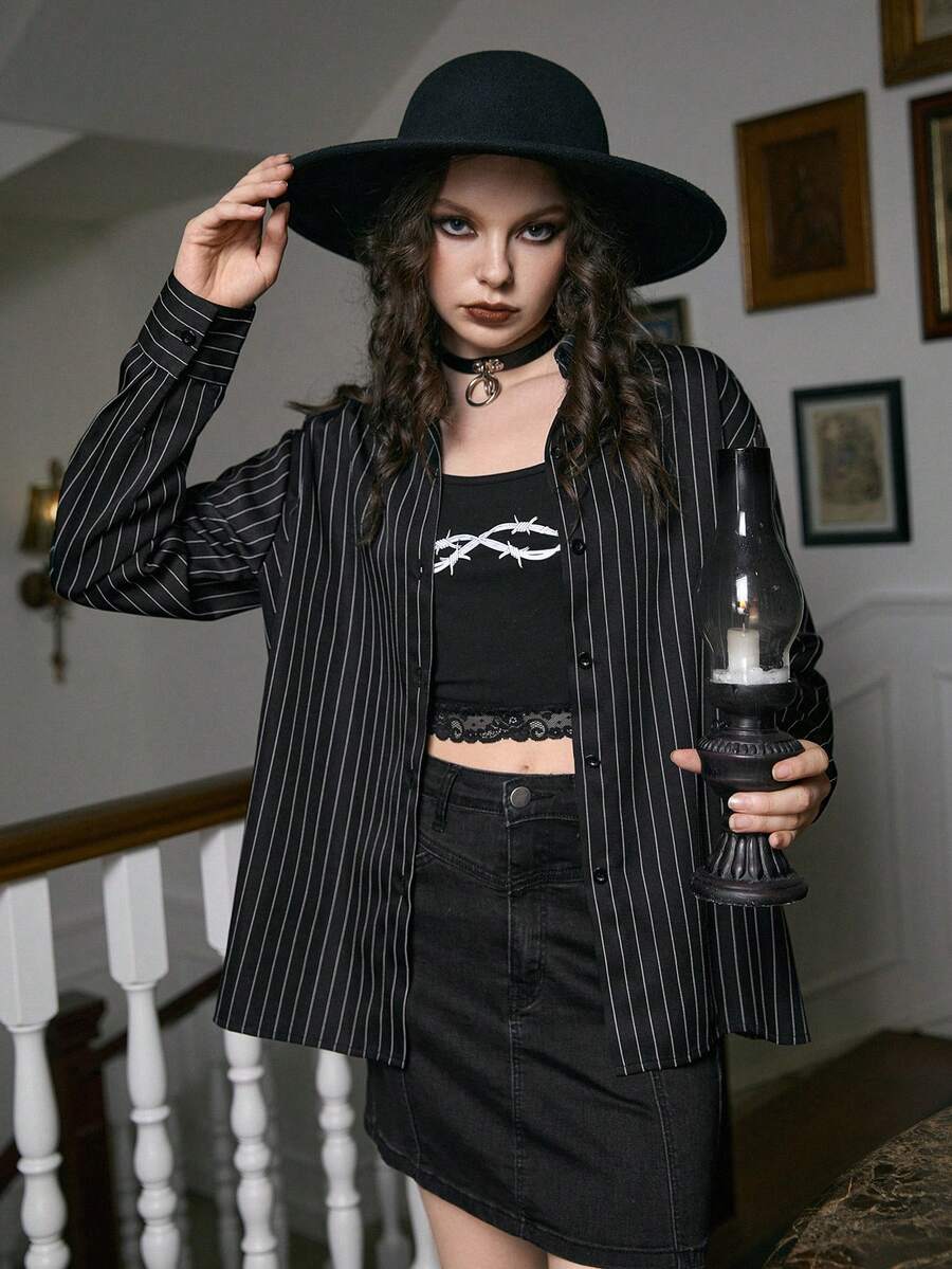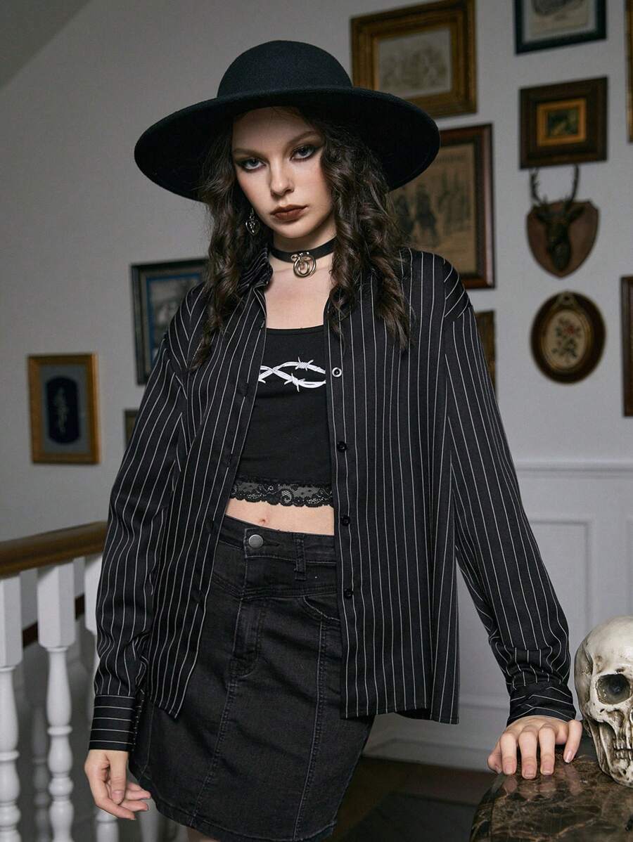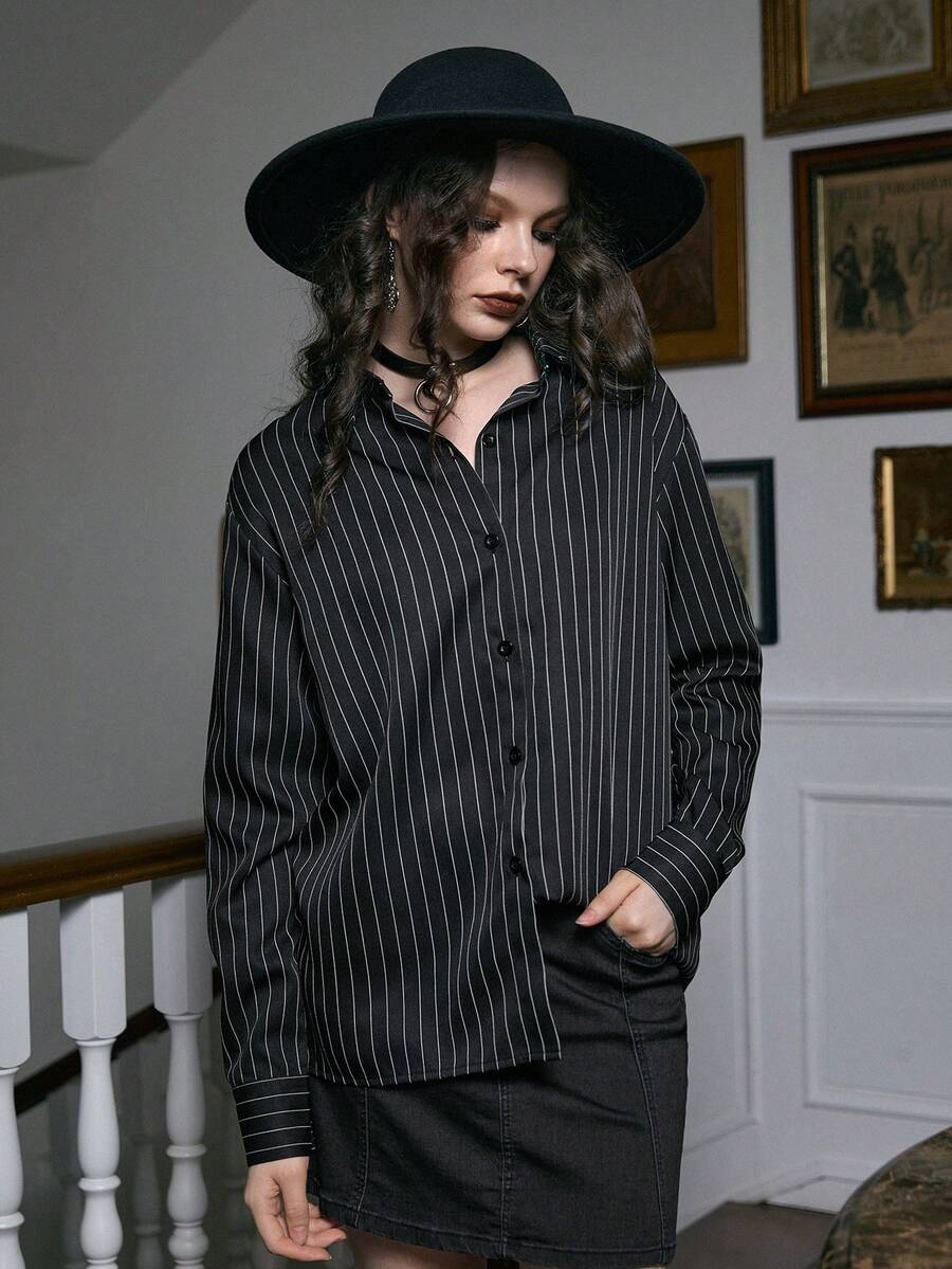 Academia Shirt mit Streifen Muster, Knopf vorne