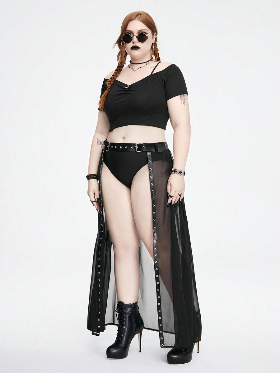 Verstellbarer Gothic-Taillengürtel mit Jacquard-Stoff-Patchwork-Rock-Overlay, Große Größen, perfekt zum Schichten