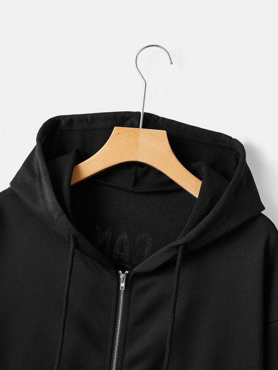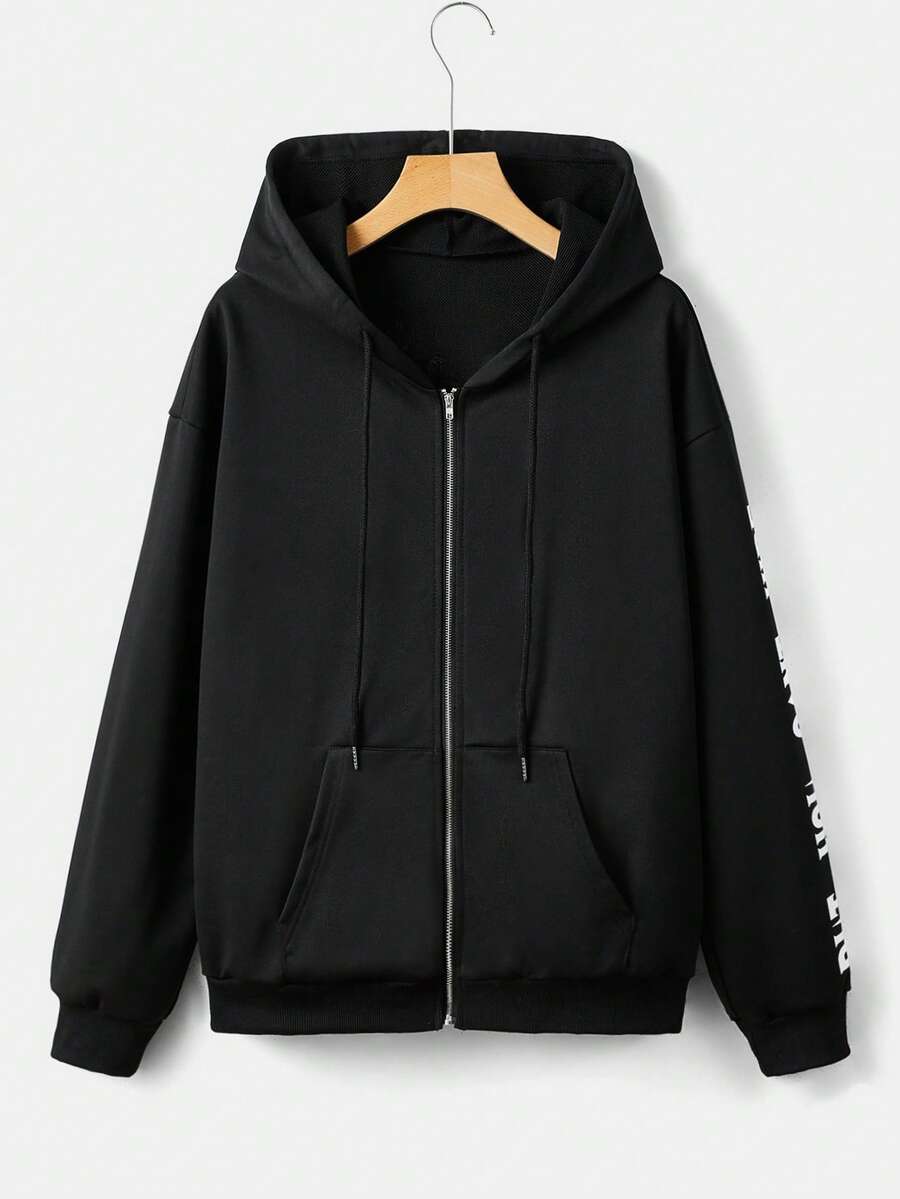 Afdhal Studio Hoodie mit Buchstaben & Schädel Muster, Drop Shoulder Tunnelzug, Reißverschluss,