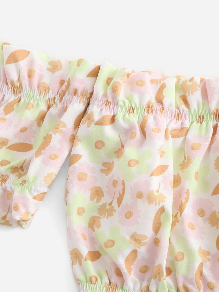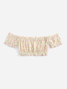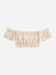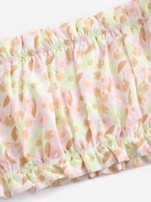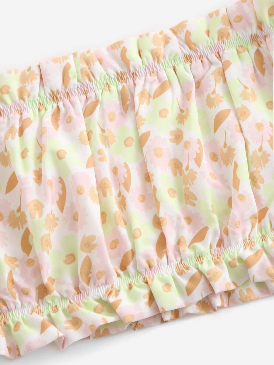 Schulterfreies Top mit Blume Muster, Rüschenbesatz