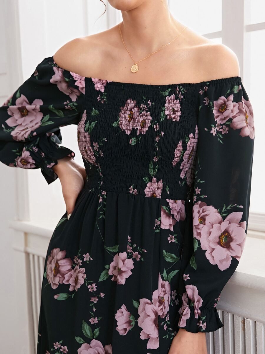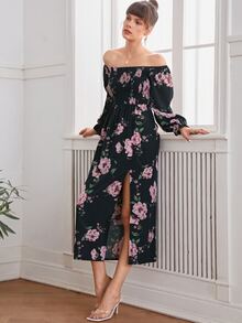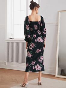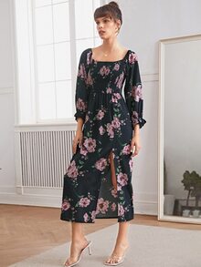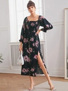 Kleid mit Blume Muster, Schößchenärmeln und Schlitz