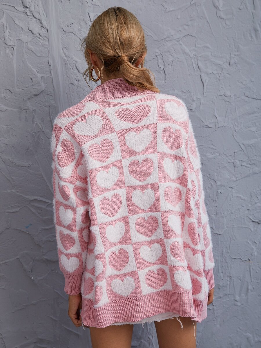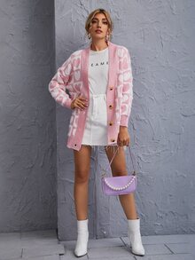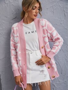 Strickjacke mit Herzen Muster und Knöpfen
