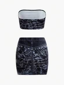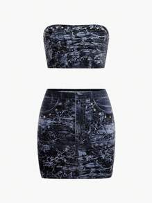All Over Print Tube Top mit & Figurbetonter Rock mit