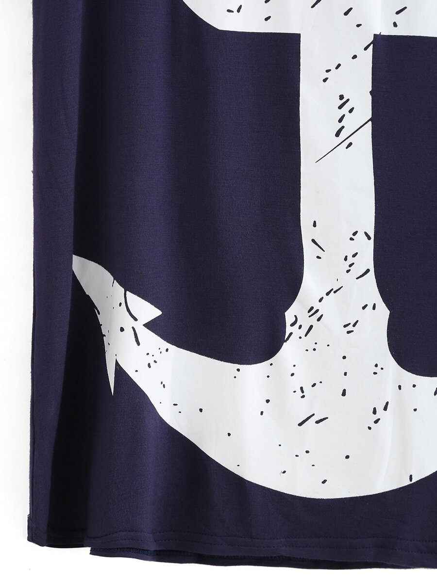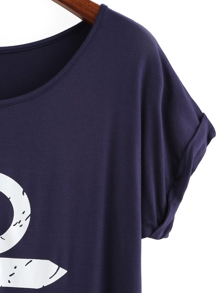 T-Shirt mit aufgekrempelten Ärmeln und Anker Druck -marine blau