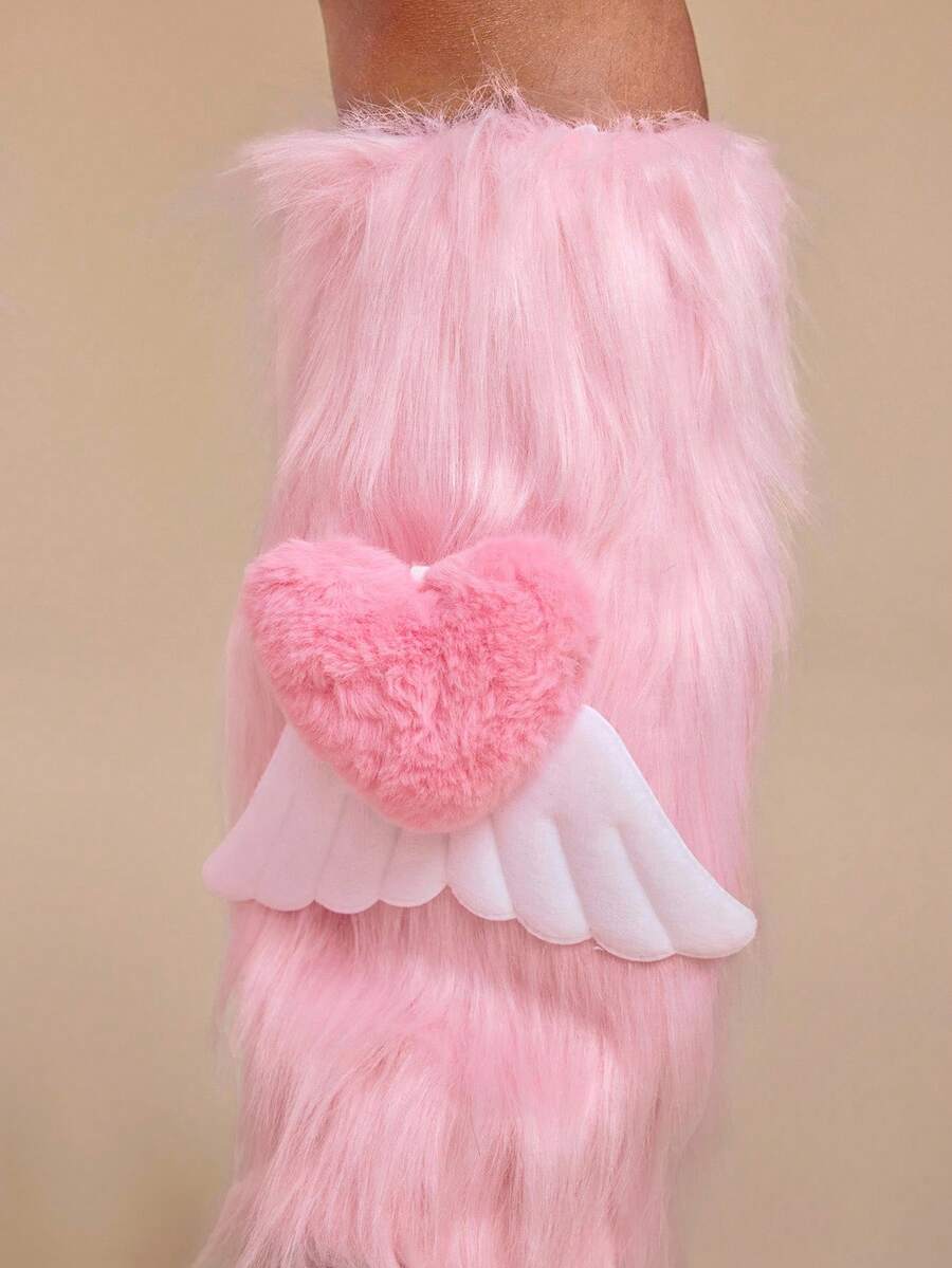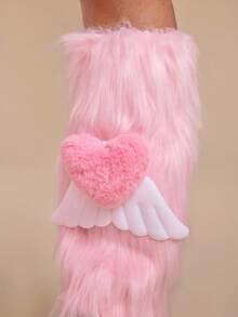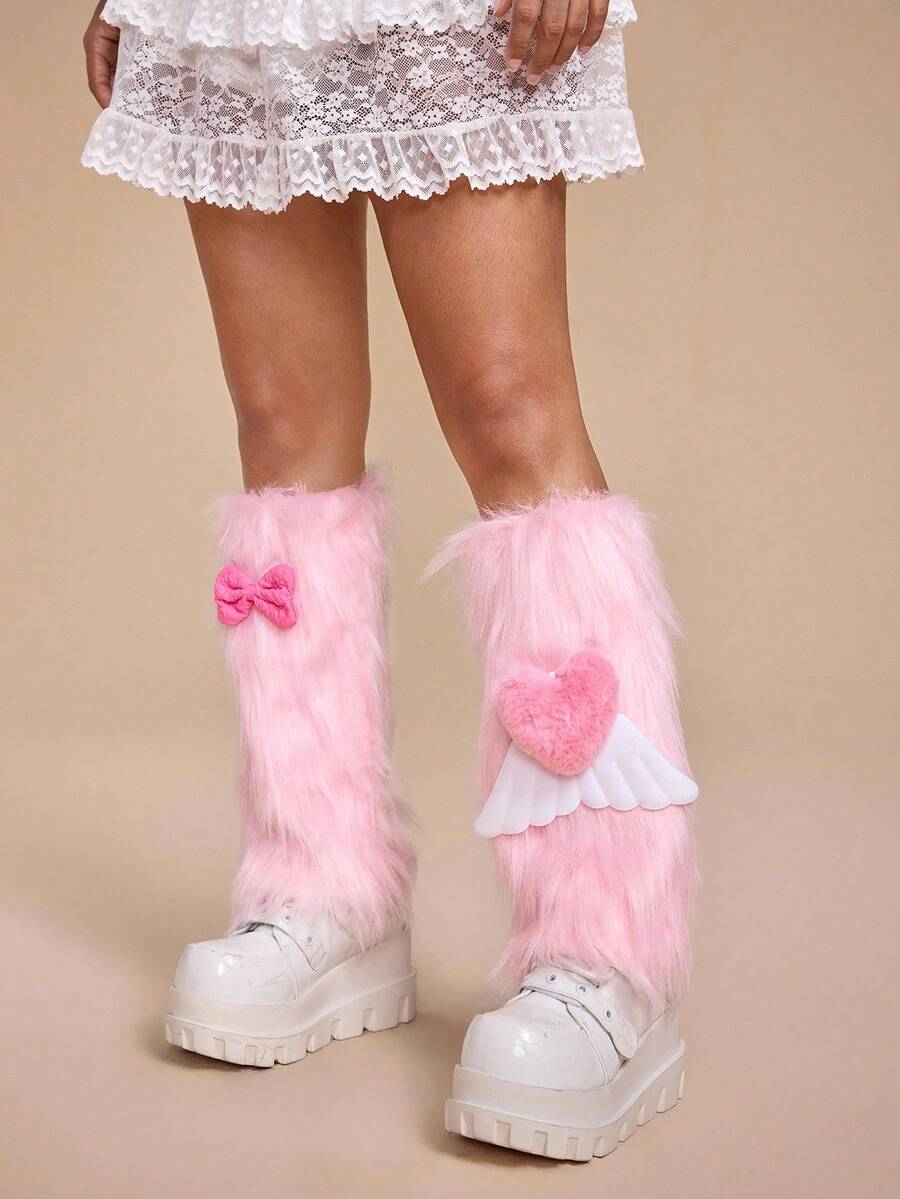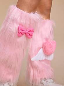 Anime 1 Paar süße rosa flauschige Beinwärmer, süße Schleifenflügel Beinwärmer, warme pelzige Beinabdeckungen für den täglichen Gebrauch