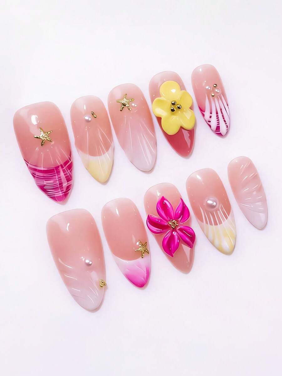 Anime 10 Stücke dreidimensional geschnitzte Muschel-Falschpanzer im Marinestil und ein Stücke doppelseitiges Klebeband