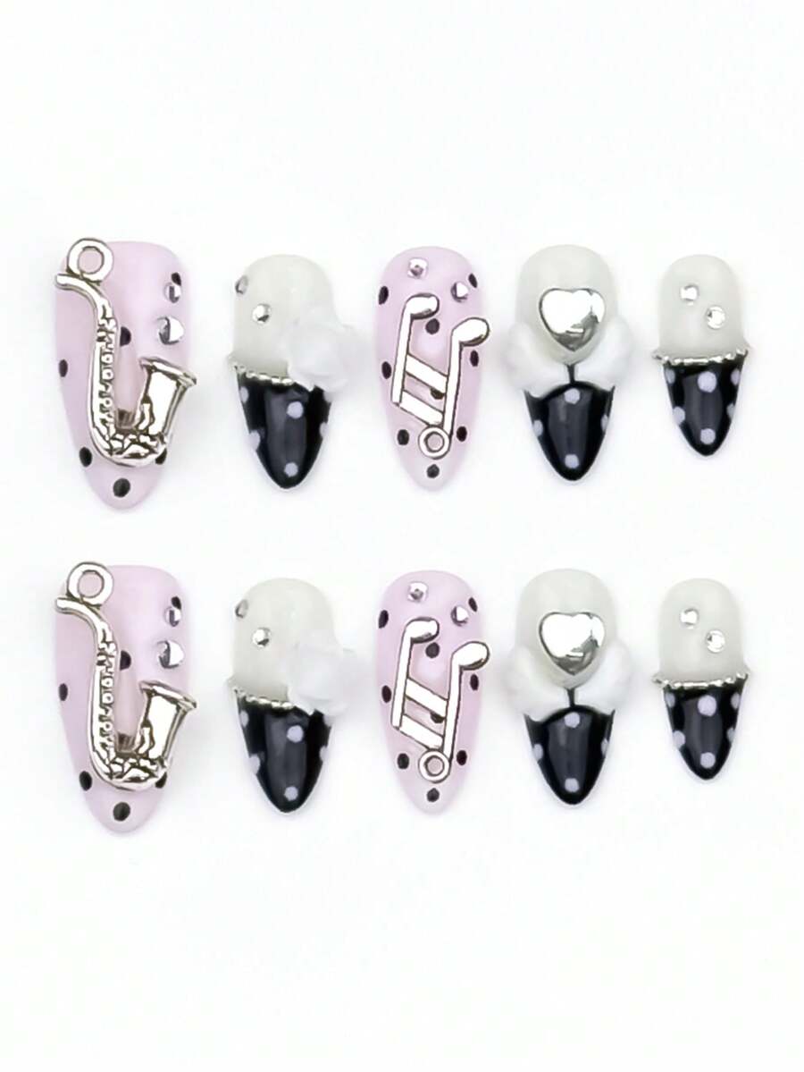Anime 10 Stück Musik-Noten-Flügel Kunstnägel Pads und 1 Stück doppelseitiges Klebeband