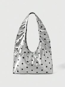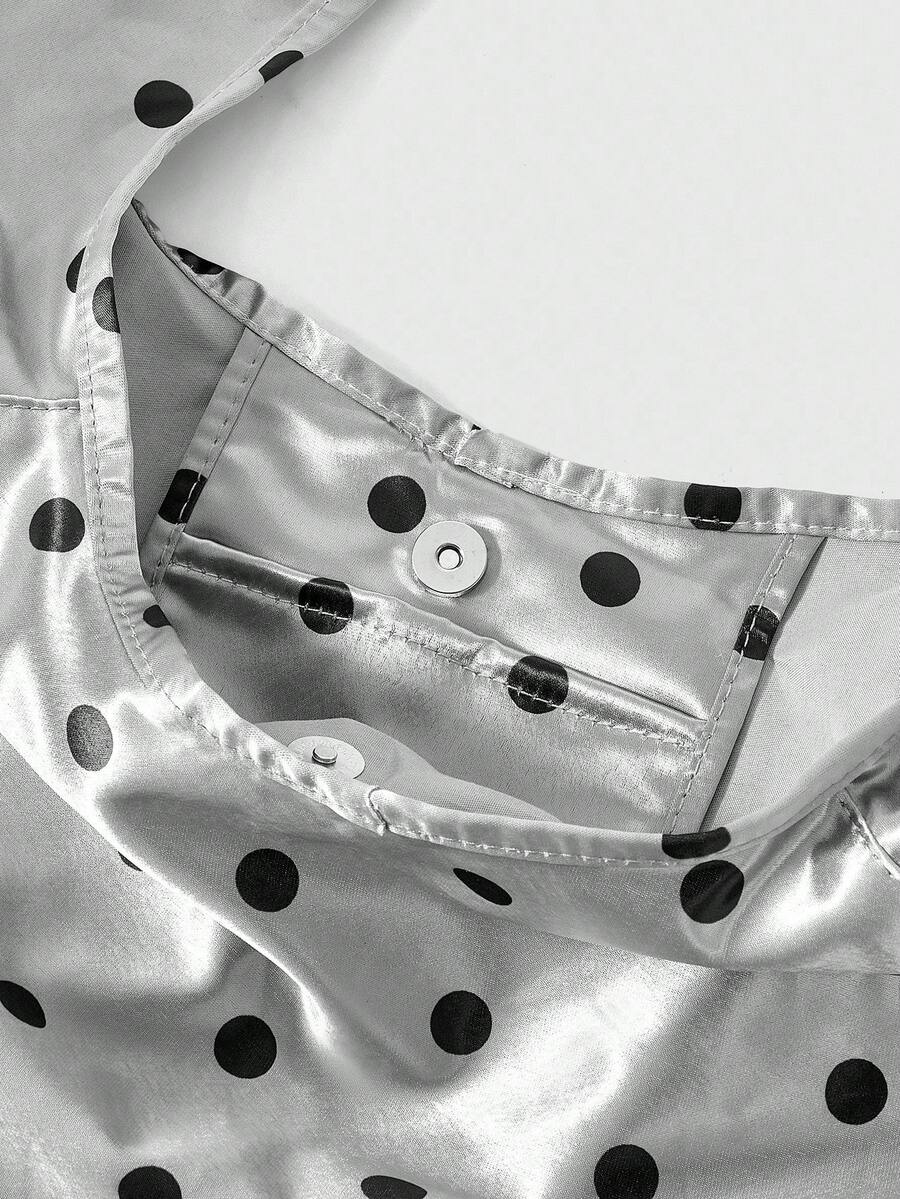 Anime 1 Stück Retro minimalistischer schwarz-weißer Polka Dot Damen Schultertasche mit großer Kapazität, lässige Shopper Tasche, geeignet für tägliche Pendler, Reisen usw.