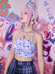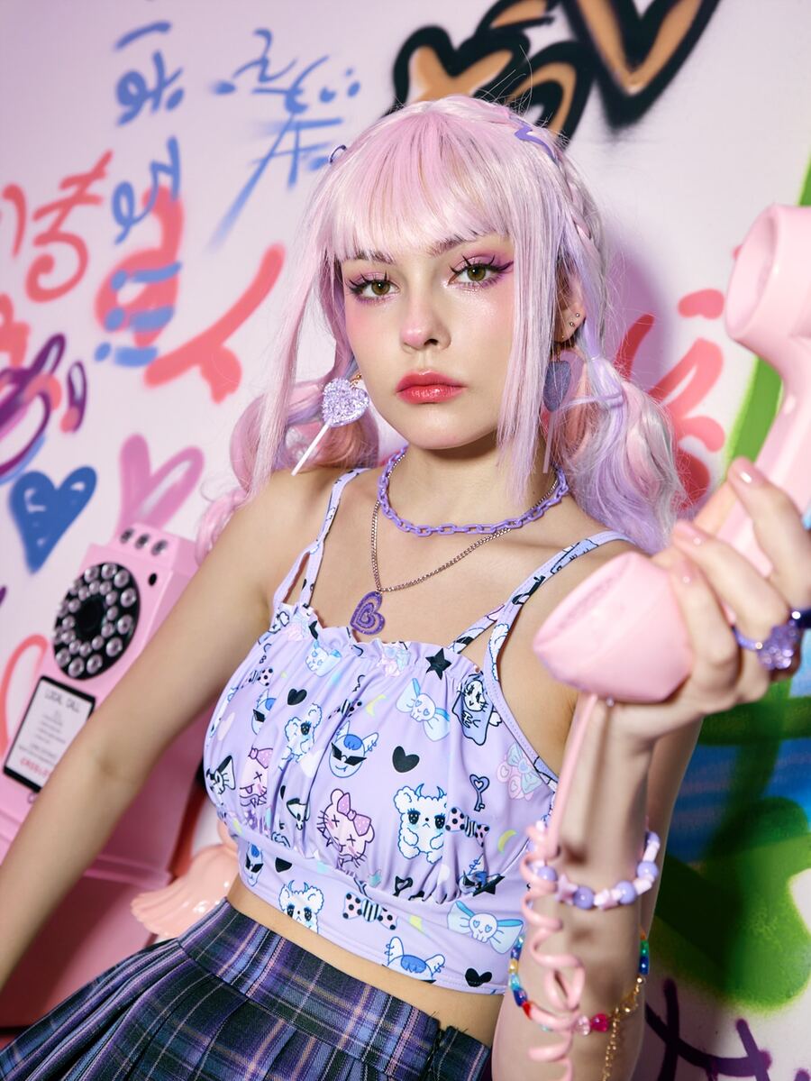 Anime Bikini Top mit Cartoon Muster, Rüschen