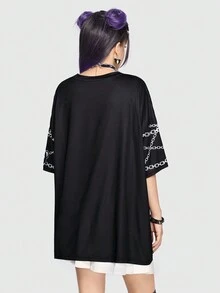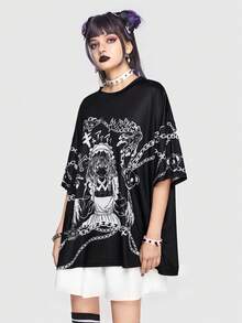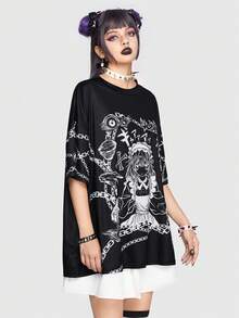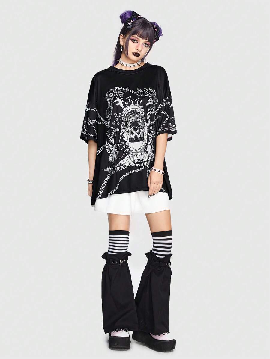 Anime Drop Shoulder T-Shirt mit Figur Grafik,