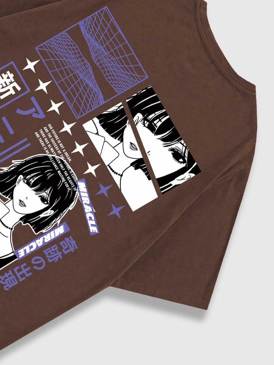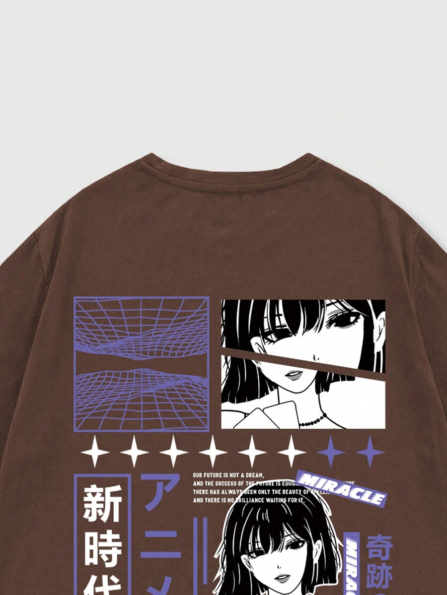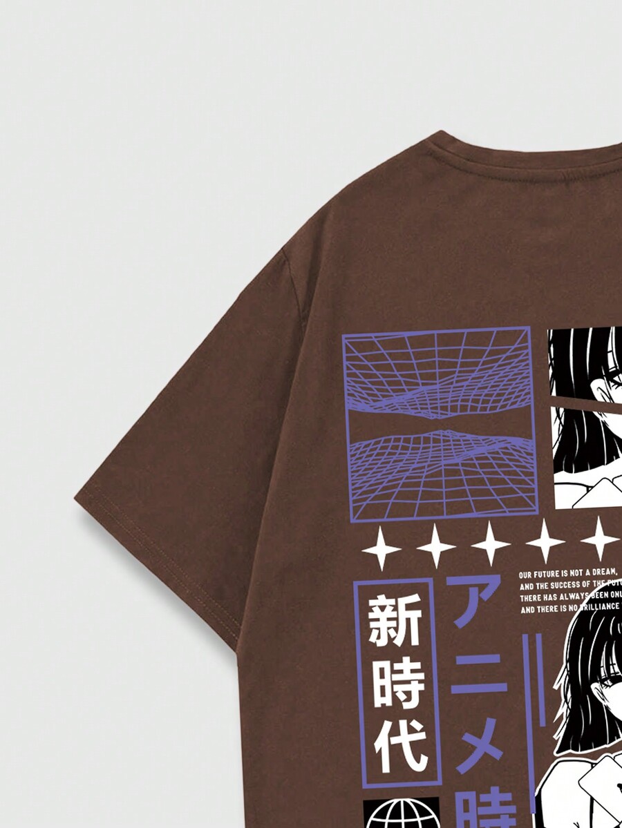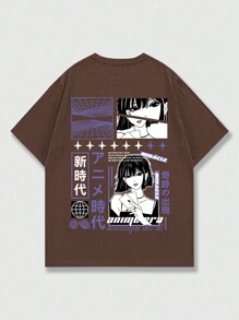 Anime Männer T-Shirt mit japanisch Schrift & Figur Grafik