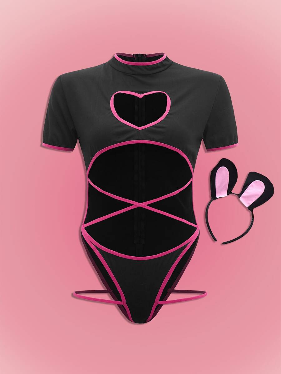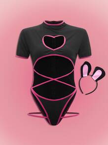 Anime Teddy Body mit Loch & Kostüm Stirnband