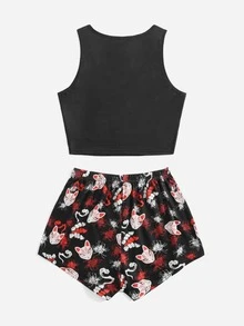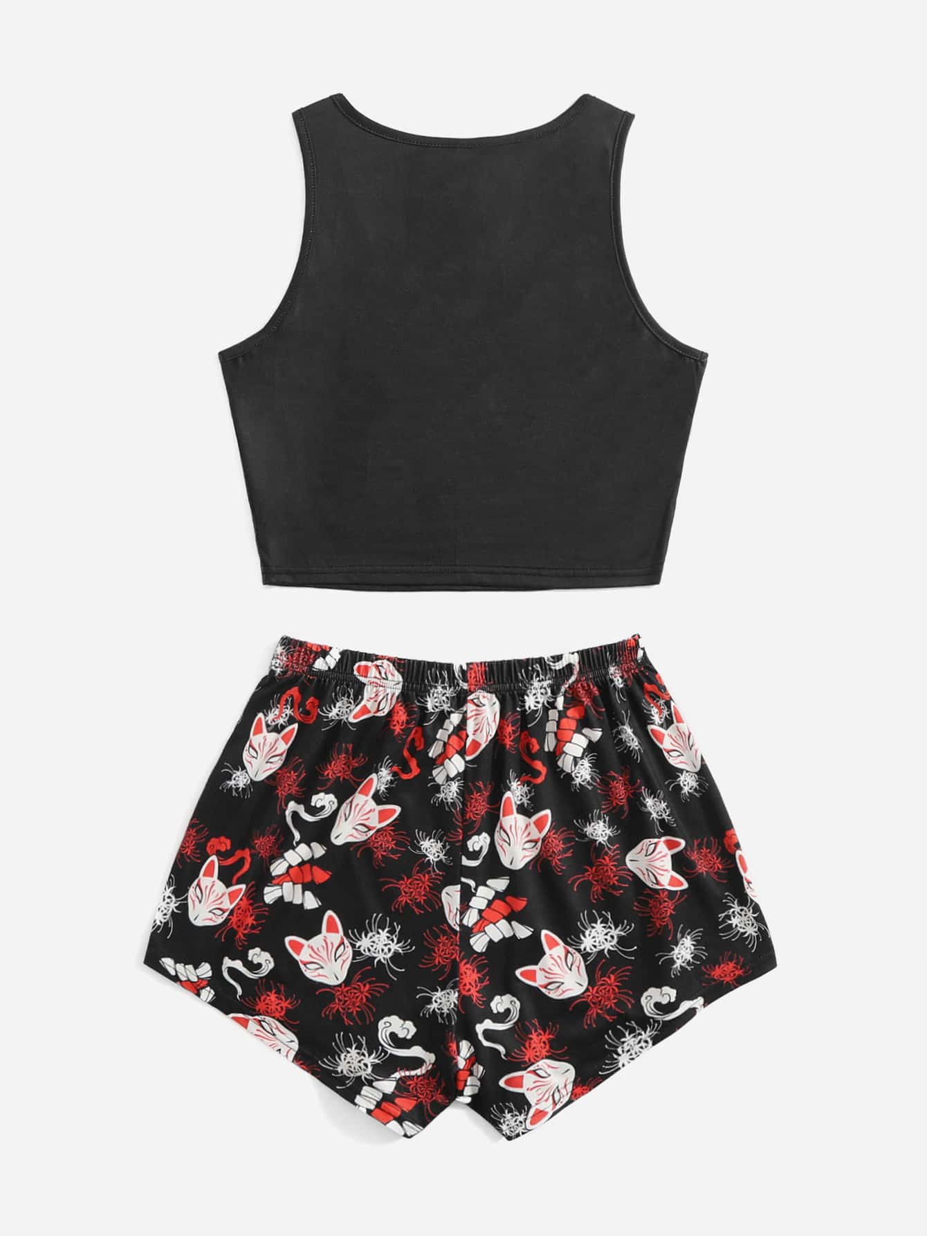 Anime Pyjama Set mit Mundschutz & Blume Grafik