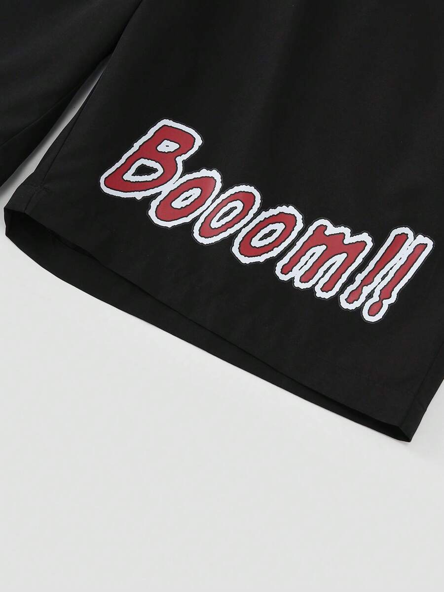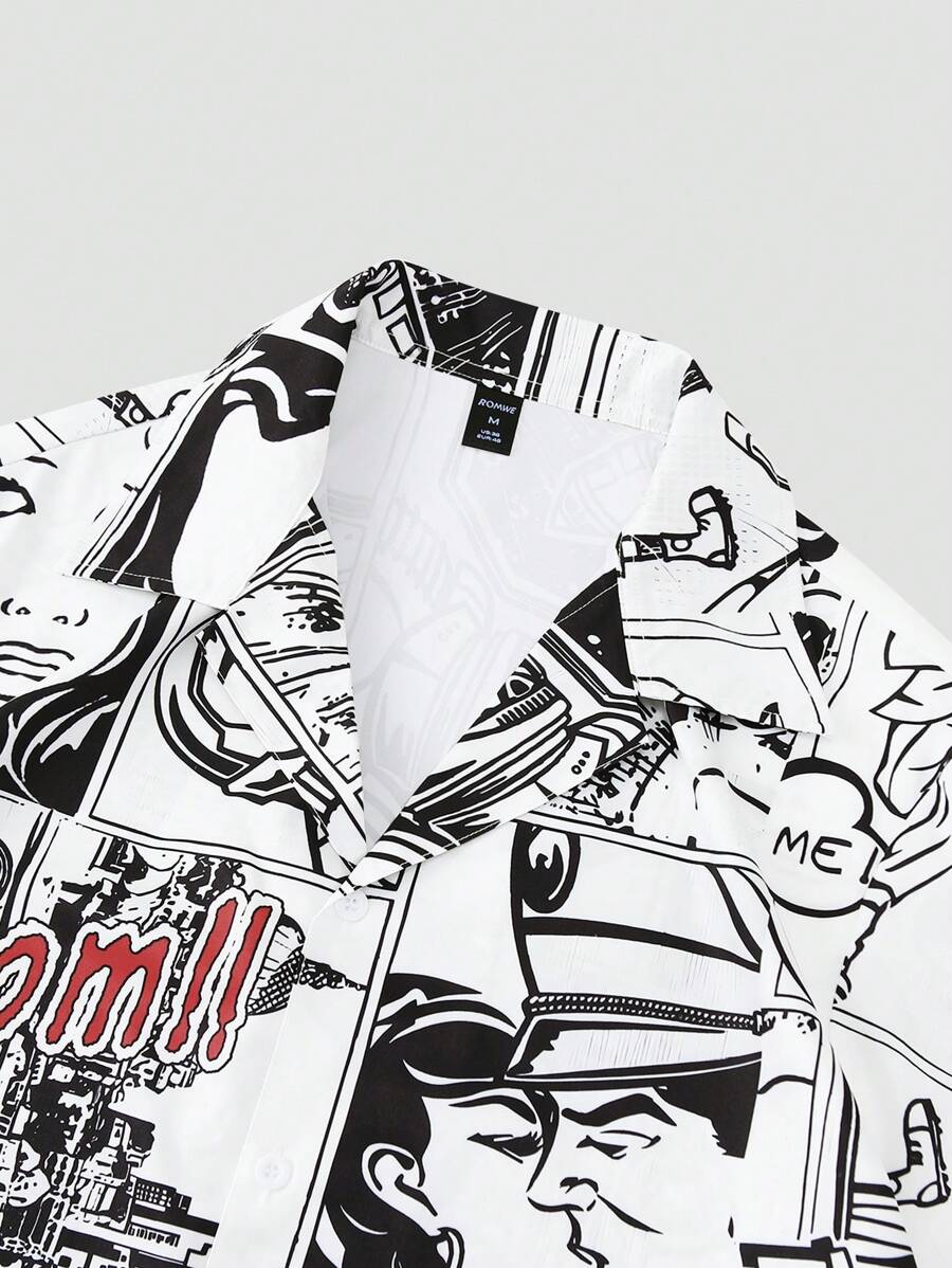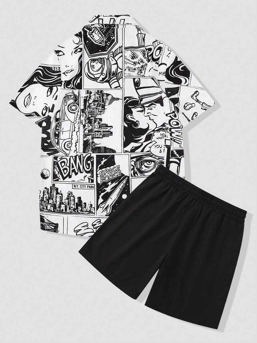 Anime Herren Allover-Muster Kurzarm Hemd und Shorts mit Kordel, 2 Stück/Set geeignet für Frühling und Sommer
