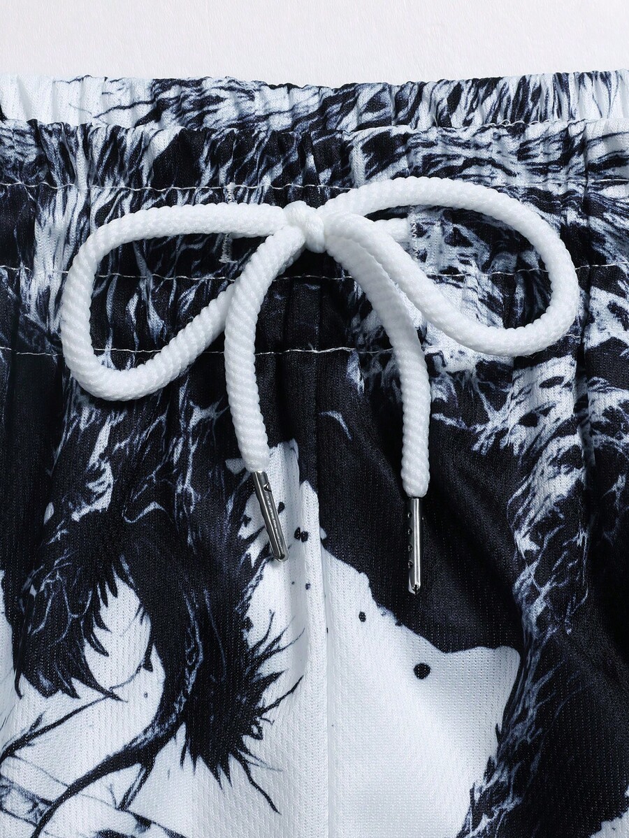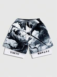 Anime Herren lässige Passform kurze Hose mit Monsters Aufdruck und elastischem Taillenbund