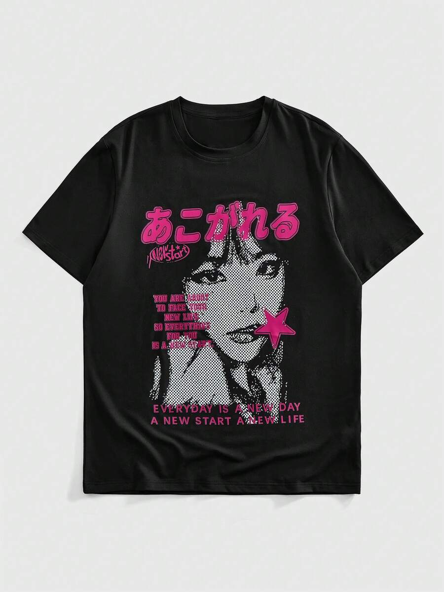 Anime Herren Casual Grafik Slogan Muster T-Shirt, Sommer
