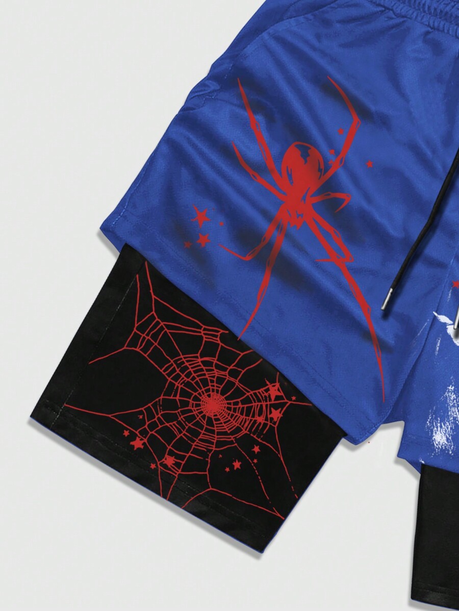 Anime Herren Grafik-Basketballshorts mit Kordelzug in der Taille, 2-in-1 Design