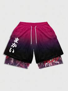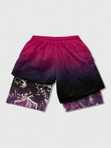 Anime Herren Sommer Lässig Shorts mit Farbverlauf Totenkopf Muster
