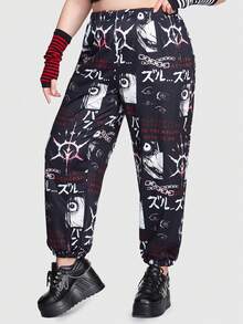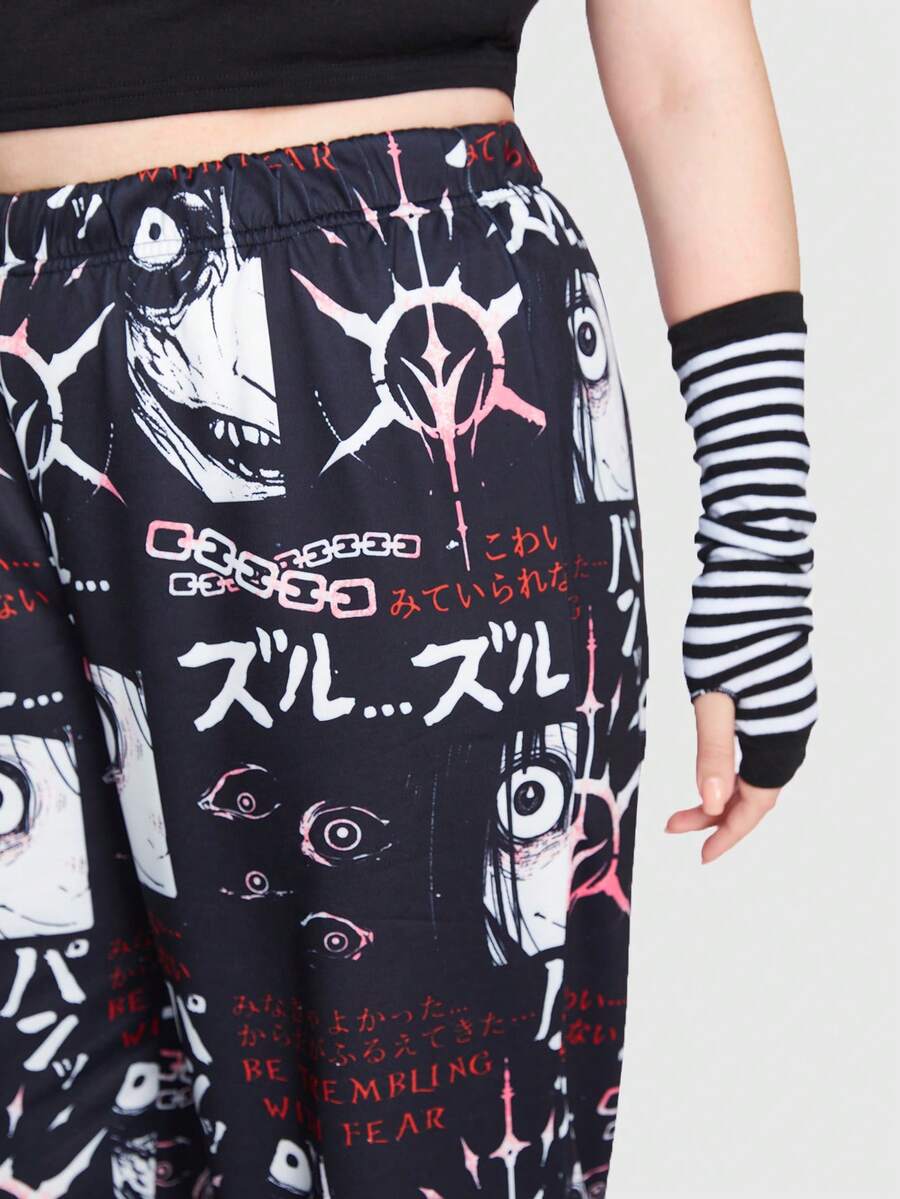 Anime Große Größe Jogginghose mit Buchstaben & Figur Grafik