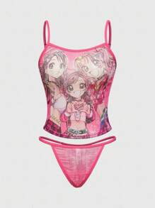 Anime Schulmädchen Muster sexy transparente Mesh Dessous Set für Frauen