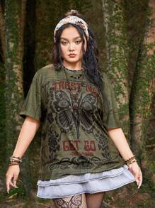Ashley Baxter Fairycore Drop Shoulder T-Shirt mit Schmetterling & Buchstabe Grafik,
