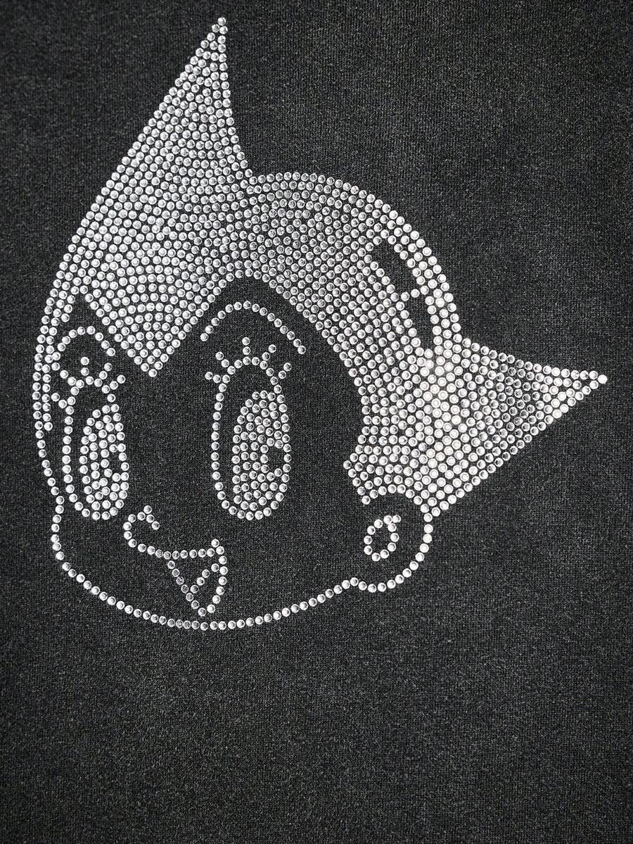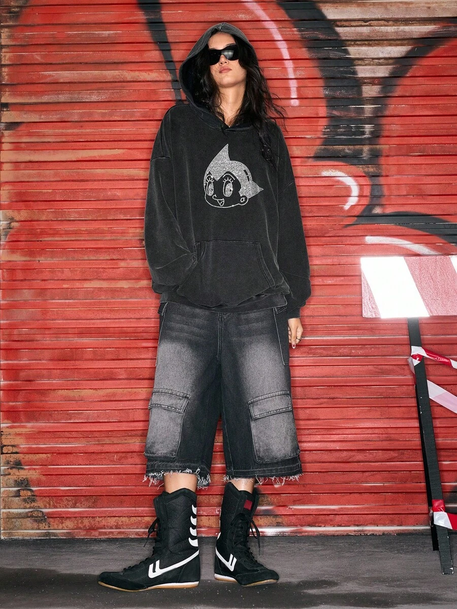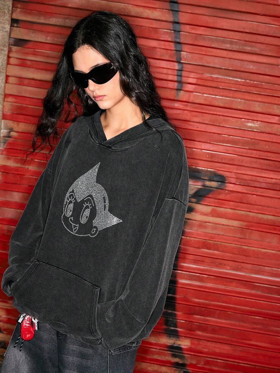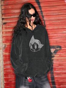 Astro Boy X ROMWE Locker sitzender Hoodie im College-Stil mit Strass-Verzierung für Damen