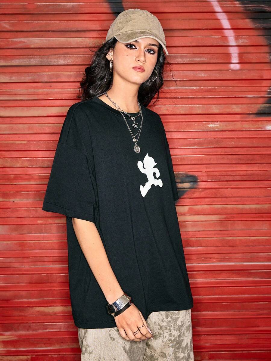 Astro Boy X ROMWE Oversized Damen T-Shirt mit süßer Cartoon Figur Grafik Silhouette