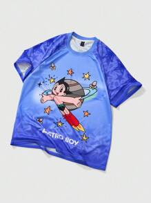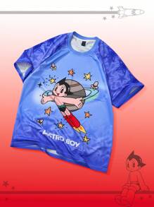 Astro Boy X ROMWE Herren Cartoon und Stern Buchstaben Grafik Raglan Kurzarm T-Shirt