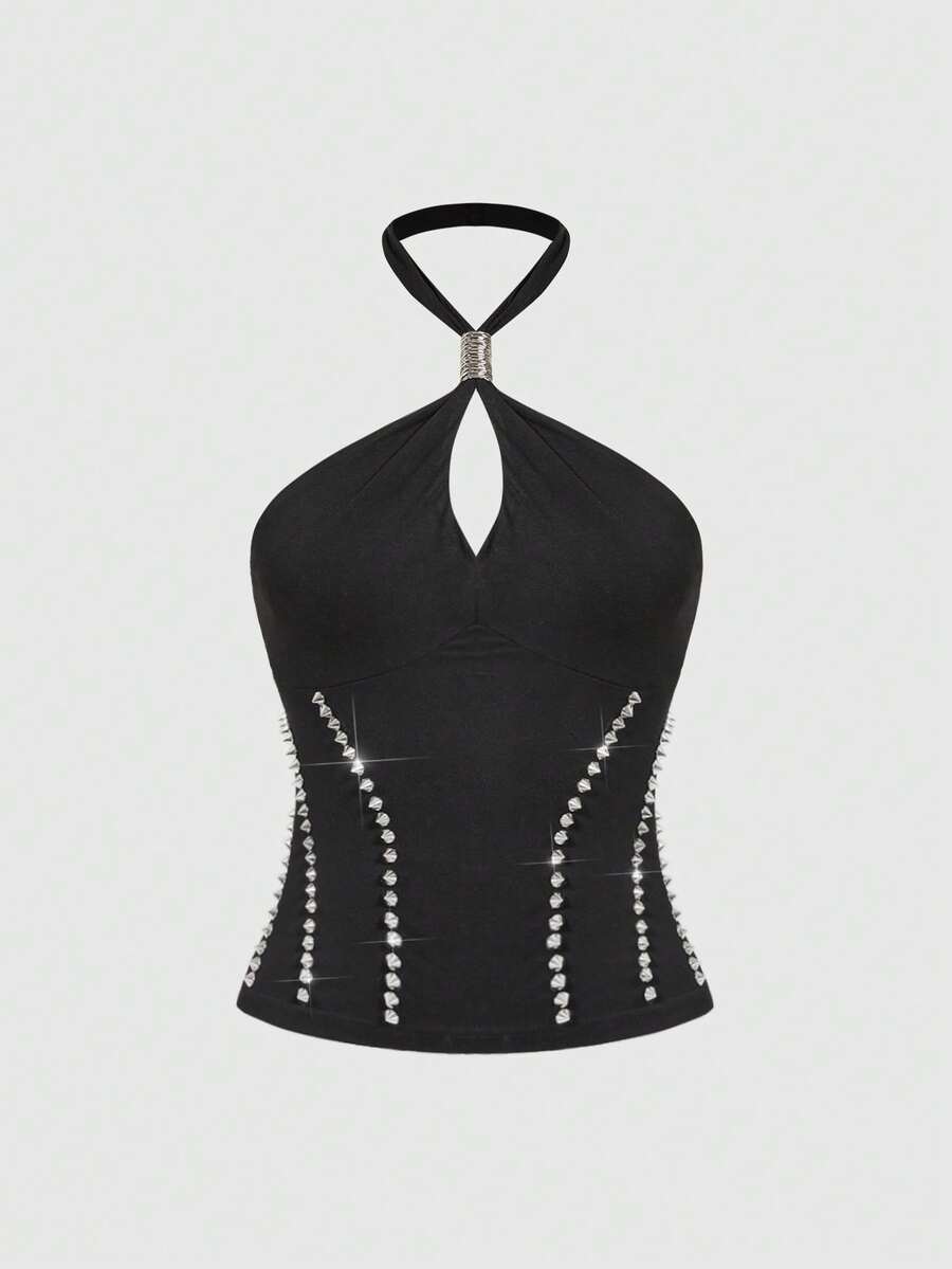 Avantgarde Nieten Punk Y2K Sexy Ausschnitt Neckholder Crop Top für Frauen