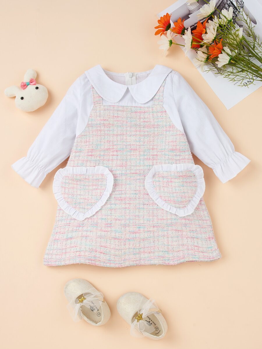 2 In 1 Kleid mit Peter Pan Kragen und Rüschen
