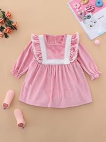 Samt Kleid mit Kontrast-Spitzen und Rüschenbesatz