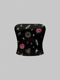 ROMWE Avant Y2K Kurztop mit Drachen Muster für Frauen, eng anliegend