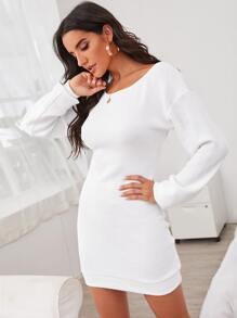 Rückenfreies Pulloverkleid mit sehr tief angesetzter Schulterpartie
