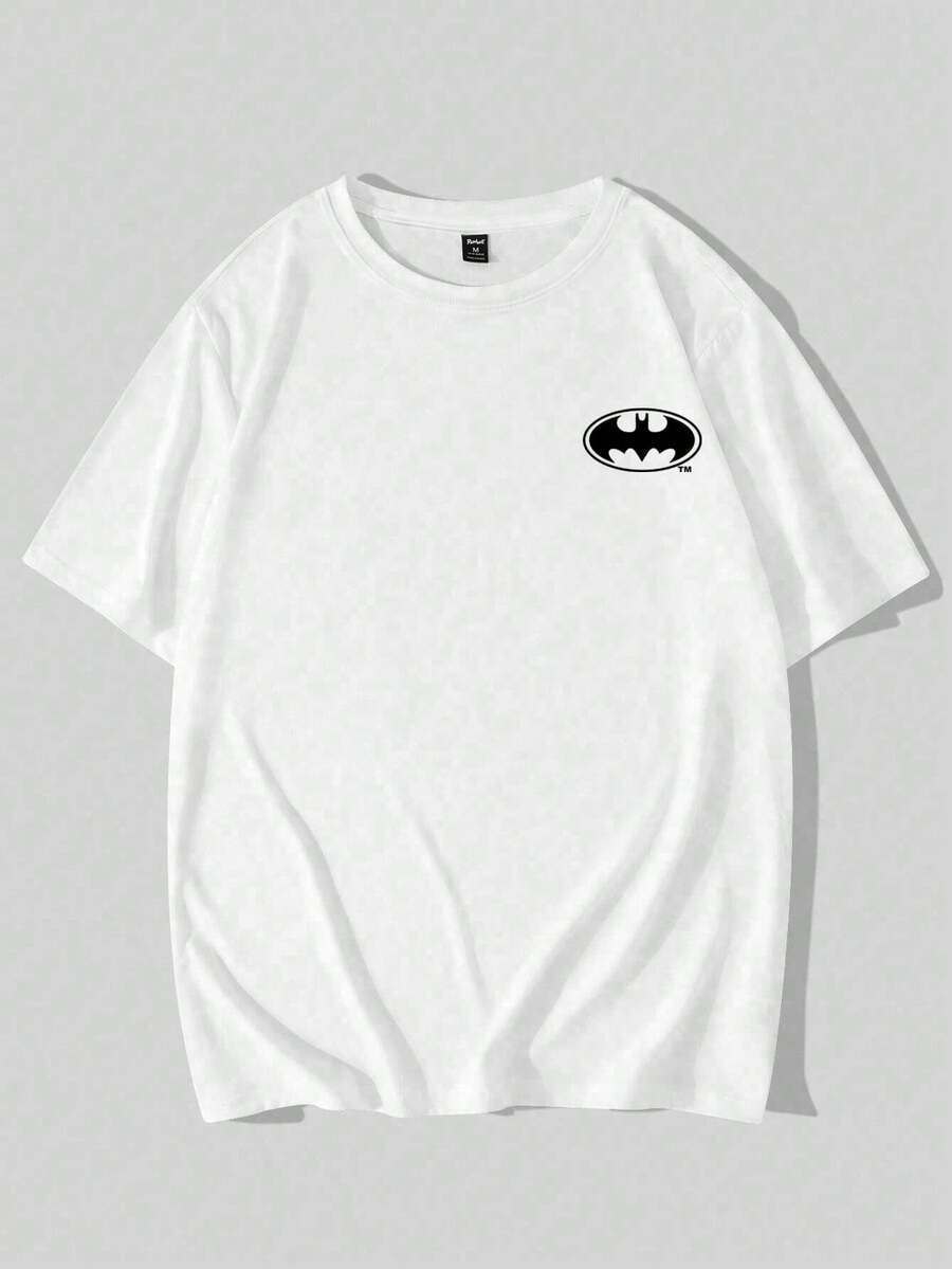 Batman X ROMWE Herren Rundhals Kurzarm Lässig bedrucktes T-Shirt, modisch & vielseitig, Sommer