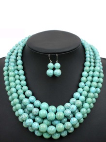 Mehrlagige Halskette & Ohrringe mit Perle