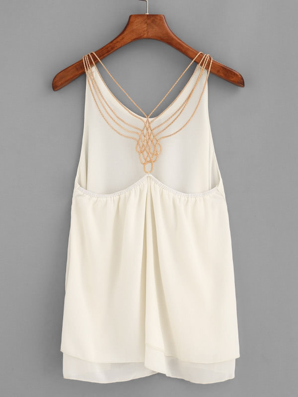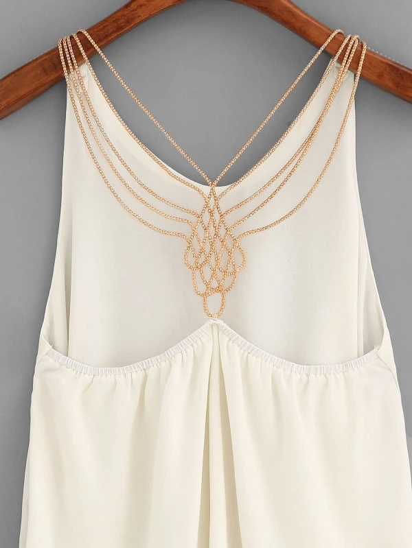 Chiffon Top mit Racerback-Trägern und Beads verziert