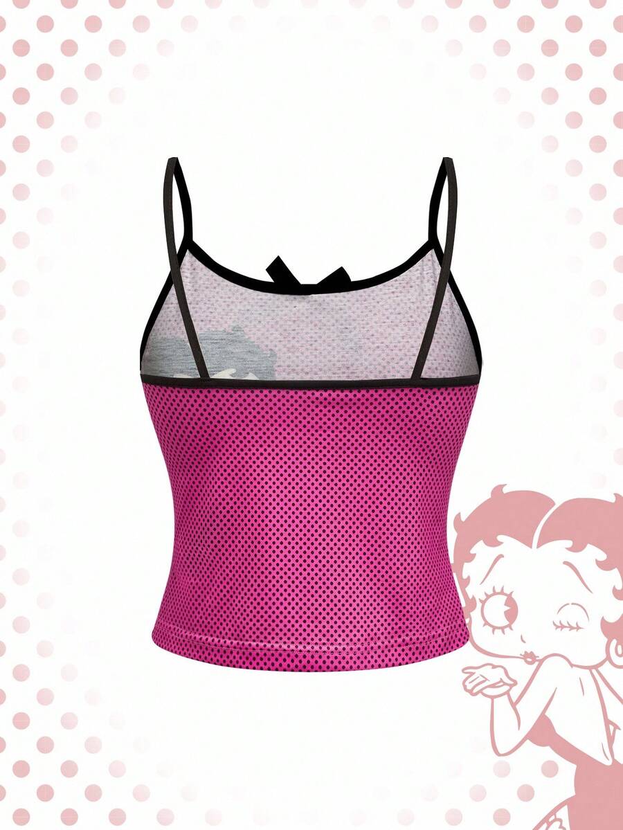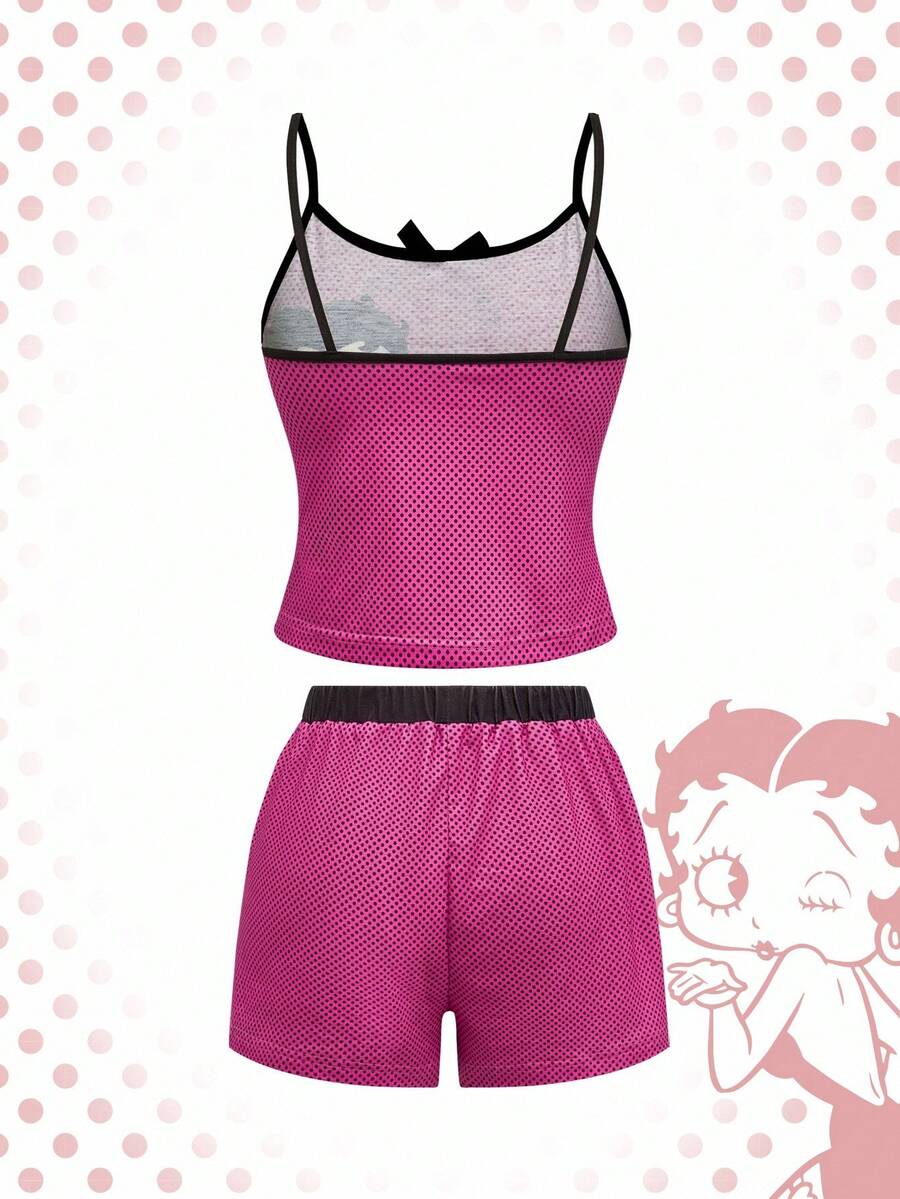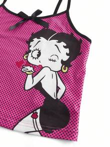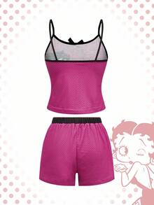 Betty Boop | ROMWE Damen Sommer Lässig Cartoon Grafik Träger Top & Shorts Pyjama Set