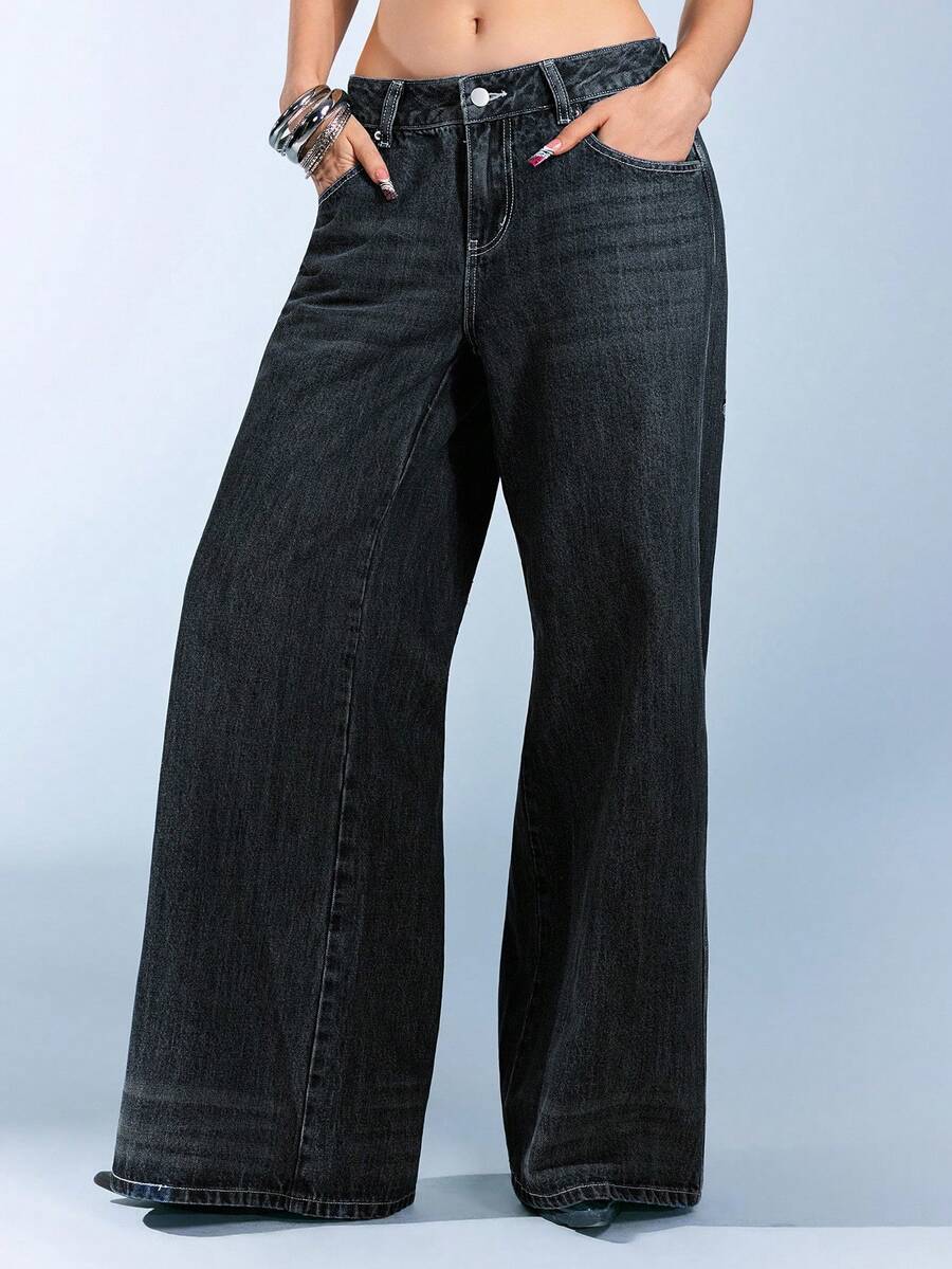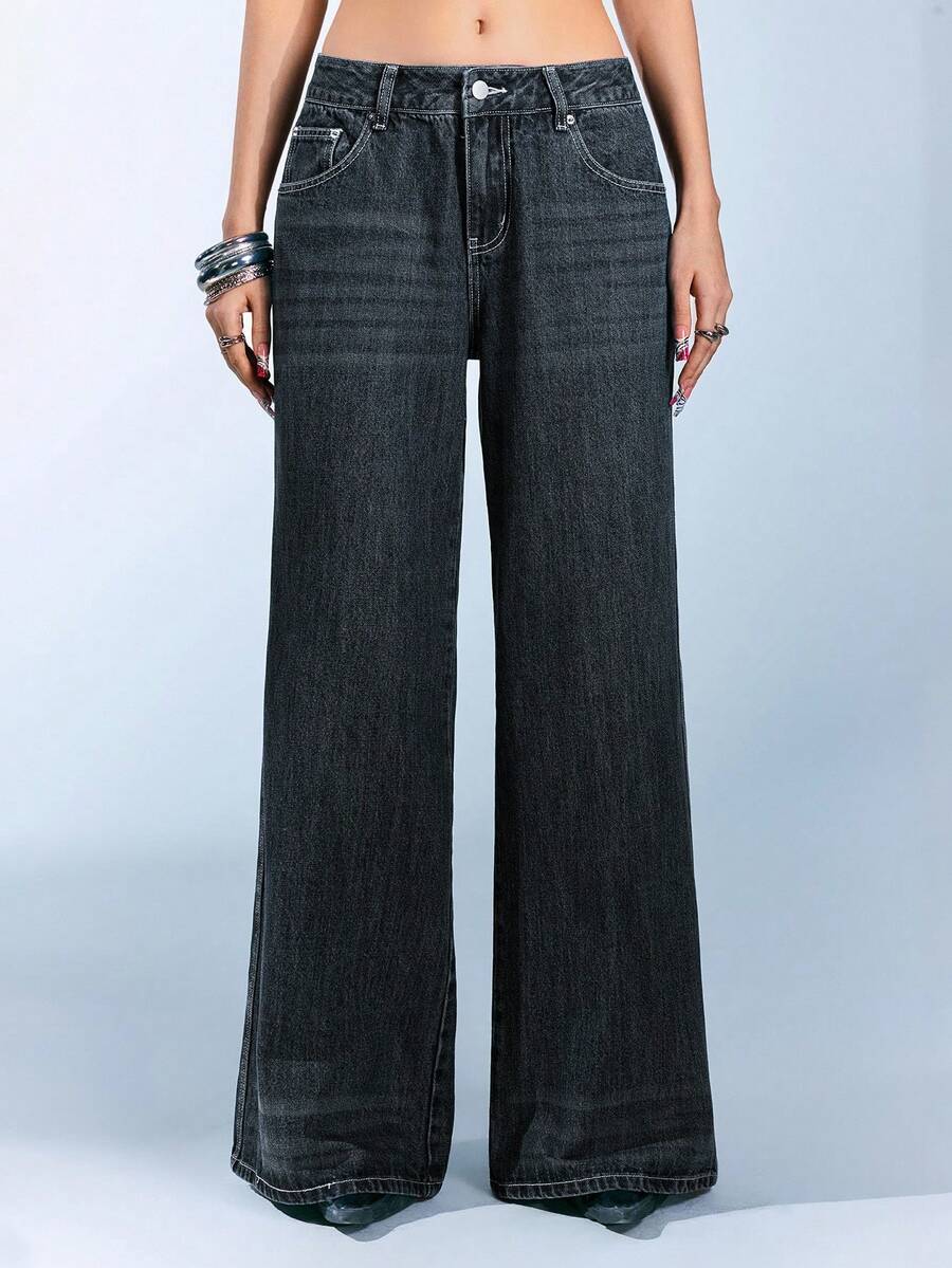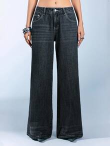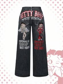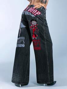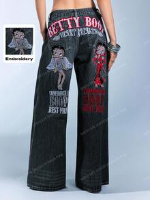 Betty Boop | ROMWE Y2K Retro Streetwear Betty & Buchstaben Stickerei Loose Fit Jeans mit niedriger Taille